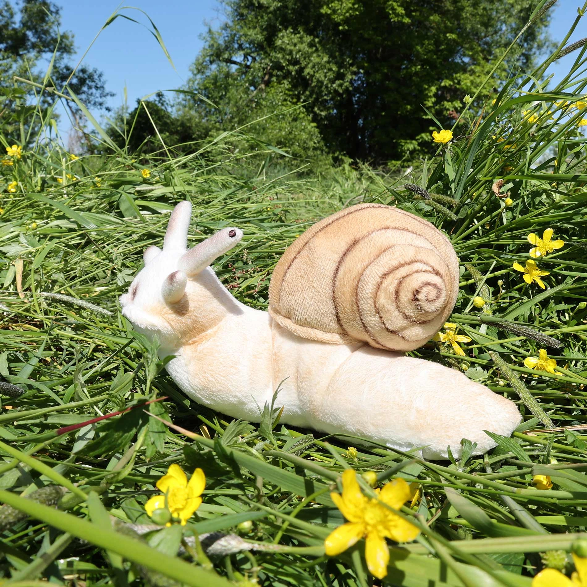 Šis maigi pūkainais gliemezis izceļas ar detalizētu izpildījumu un patīkamu materiālu, kas aicina uz mīļošanos. Pateicoties roku darbam, tas izskatās autentiski un droši pavadīs arī pašus mazākos bērnus.