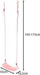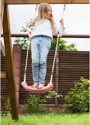 Sagādājiet bērniem prieku ar stilīgām šūpolēm pūderrozā krāsā. Profilēts sēdeklis nodrošina ērtumu, bet izturīgās virves ar vienmērīgu garuma regulēšanu 105–175 cm ļauj perfekti pielāgot gan iekštelpām, gan ārtelpām. Konstrukcija izstrādāta ar uzsvaru uz drošību un stabilitāti, tāpēc uz to var paļauties ik dienu.