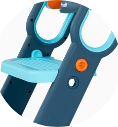 Plats pretbuksēšanas pakāpiens, neslīdošas kājiņas un stingri rokturi sniedz bērniem pārliecību katrā solī un sēdēšanā.