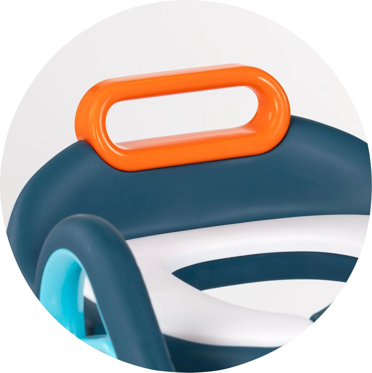 Vecāki novērtēs vieglu tīrīšanu, ātru uzlikšanu un kompakto uzglabāšanu. Regulējamais kāju balsts aug līdz ar bērnu un atbalsta pareizu sēdēšanu. Universālā konstrukcija der vairumam standarta podu.
