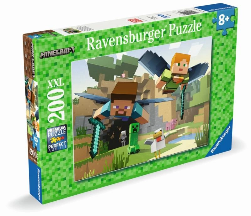 Ieniriet Minecraft pasaulē ar 200 gabaliņu puzli, kas sagādās prieku gan iesācējiem, gan pieredzējušiem licējiem. Zīmols Ravensburger ir precīza izgriezuma, noturīgu krāsu un izturīga kartona garants, tāpēc gabaliņi nevainojami sader un salikšana ir patiess prieks.