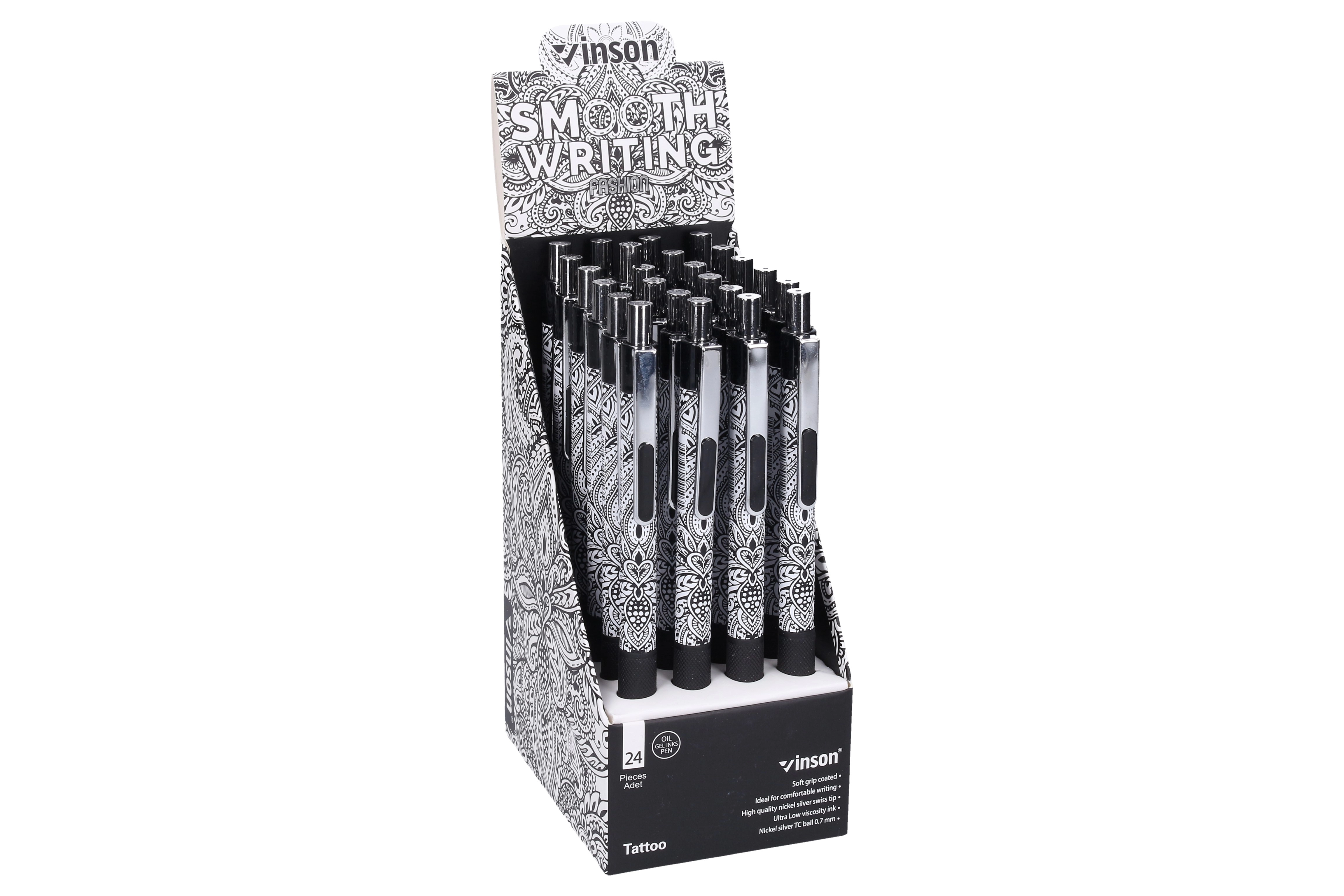 Iepakojumā atradīsiet 24 gabalus praktiskā displeja kastītē, kas ir piemērota veikaliem, reģistratūrām vai koplietojamiem birojiem. Lieliska izvēle skolām, uzņēmumiem un mājsaimniecībām, kur svarīgi vienmēr turēt pa rokai pietiekamu daudzumu rakstāmpiederumu.
