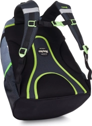 Skolas mugursoma OXY Ombre Grey ir paredzēta skolēniem no 3. klases un augumam no apmēram 136 cm. Pateicoties anatomiski veidotajam muguras panelim (43 cm), polsterētajām siksnām un regulējamai krūšu siksnai, tā nodrošina lielisku slodzes sadali un komfortu visas dienas garumā. Stabilā, stingrā pamatne novērš apgāšanos, un mugursoma droši stāv arī pilnībā piepildīta.