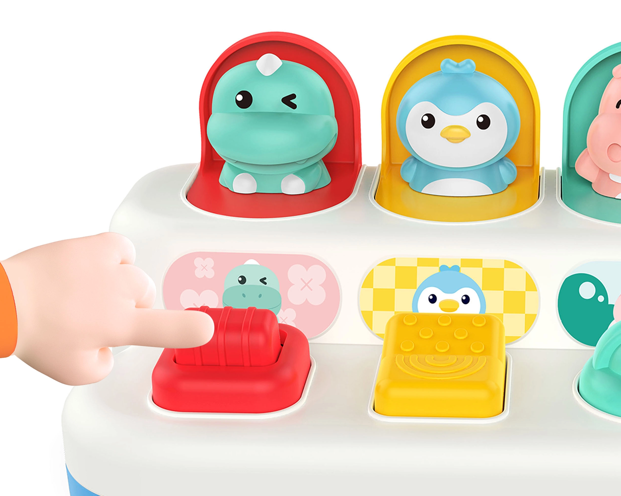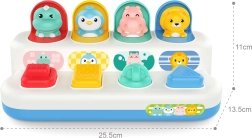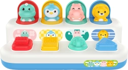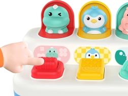Izklaidējoša un izturīga interaktīva rotaļlieta pašiem mazākajiem: aktivizējot slēdzi, ritenīti vai pogas, mīlīgi izlec dzīvnieciņi. Lieliski piemērota smalkās motorikas attīstīšanai, cēloņu–seku izpratnei un sensorajai uztverei.