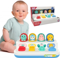 Šī krāsainā pop-up rotaļlieta no zīmola WOOPIE apvieno mācīšanos un izklaidi bērniem no 18 mēnešu vecuma. Katrs dzīvnieciņš parādās pēc pogas nospiešanas, ritenīša pagriešanas vai sviras pārslēgšanas – tā bērni dabiski vingrina acu–roku koordināciju un izpratni par cēloņiem un sekām.