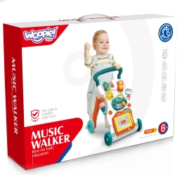 Daudzfunkcionāls rotaļu staigulis WOOPIE bērniem no 6 mēnešiem atbalsta pirmos soļus un sniedz daudz prieka. Tas piedāvā 2 vienā funkciju – stabilu staiguli/push walker un noņemamu interaktīvu paneli ar gaismas un skaņas efektiem. Pateicoties magnētiskajai rakstām/kreslēšanas tāfelei, klavierītēm, krāsainajām pogām un grāmatiņai, tas palīdz attīstīt smalko un lielo motoriku, koordinācijas spējas un maņu uztveri.