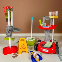 Šis bērnu uzkopšanas komplekts ir vairāk nekā rotaļlieta – tā ir aizraujoša iespēja bērniem apgūt kārtību, organizētību un rūpes par apkārtējo vidi. Pateicoties bagātīgajam aprīkojumam un mobilajiem ratiem, bērni var izmēģināt dažādus darbiņus un atdarināt pieaugušos ikdienas pienākumos.