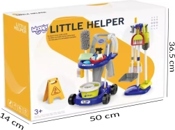 Mops, slots, otiņa ar liekšķeri, spainis, lupatiņas, smidzinātājs un brīdinājuma zīme – viss, kas mazajiem palīgiem vajadzīgs, lai atdarinātu īstu uzkopšanu.