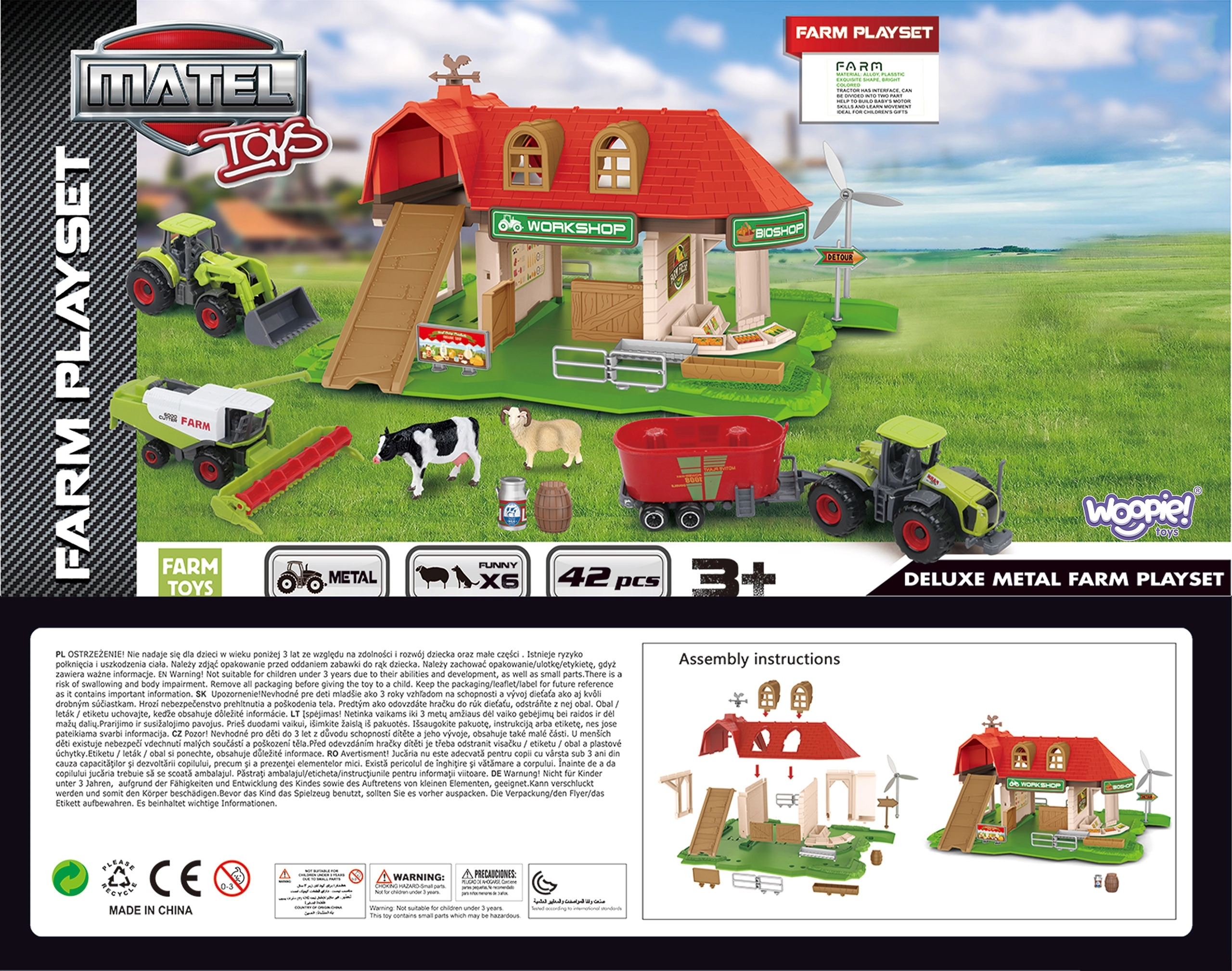 - Ferma (2 līmeņi), zemnieku veikaliņš, 3 traktori/kombaini, 3 dzīvnieku figūriņas