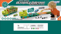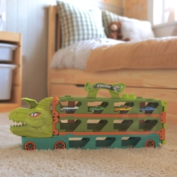 Izklaides kravas auto Dino ir lieliska izvēle bērniem no 3 gadu vecuma. Komplektā ir kravas auto, kas pārvēršams par sacīkšu trasi ar dinozaura motīvu, nodrošinot bezgalīgu izklaidi. Palaidēja sistēma ļauj katapultēt mašīnītes uz priekšu, nospiežot pogu dinozaura galvā.