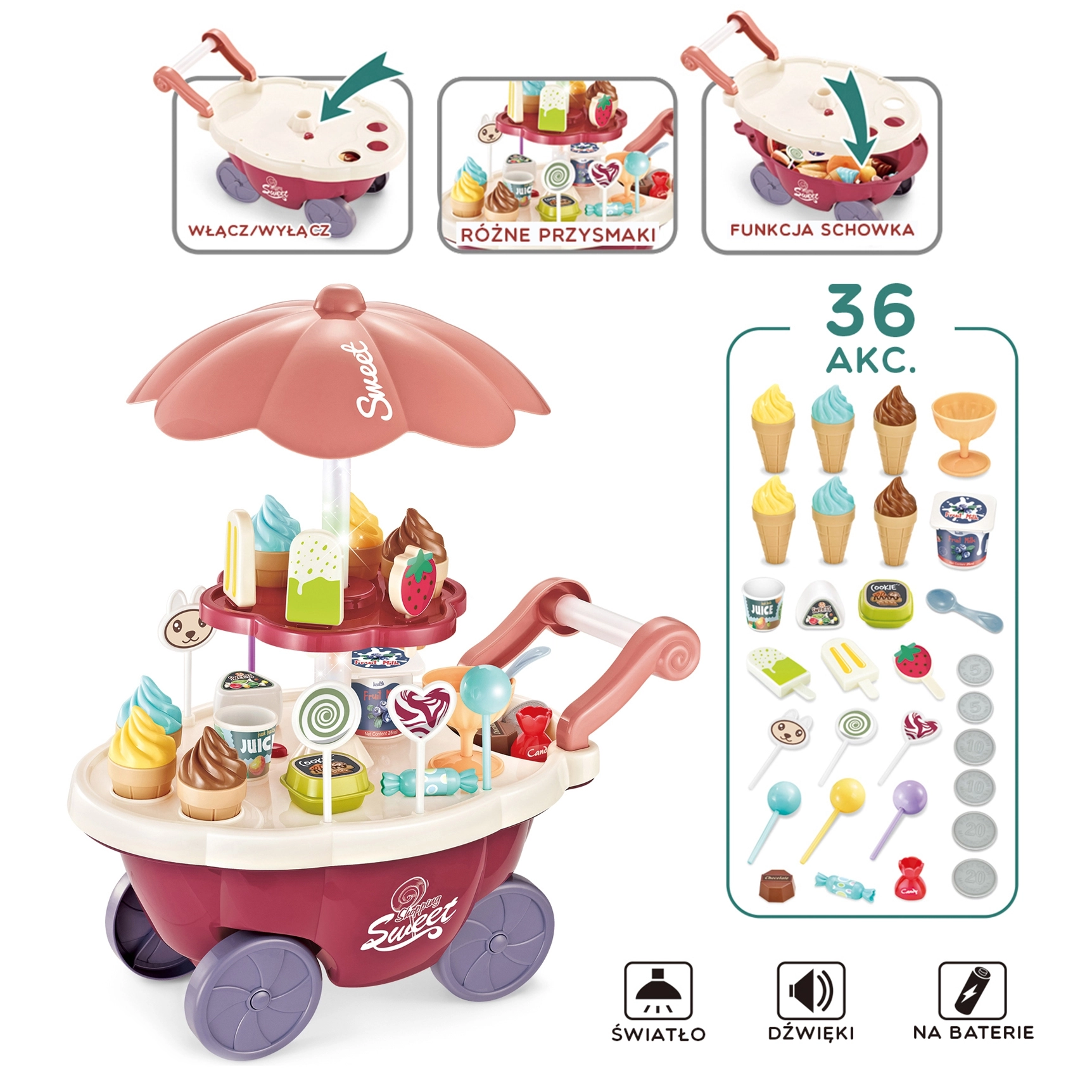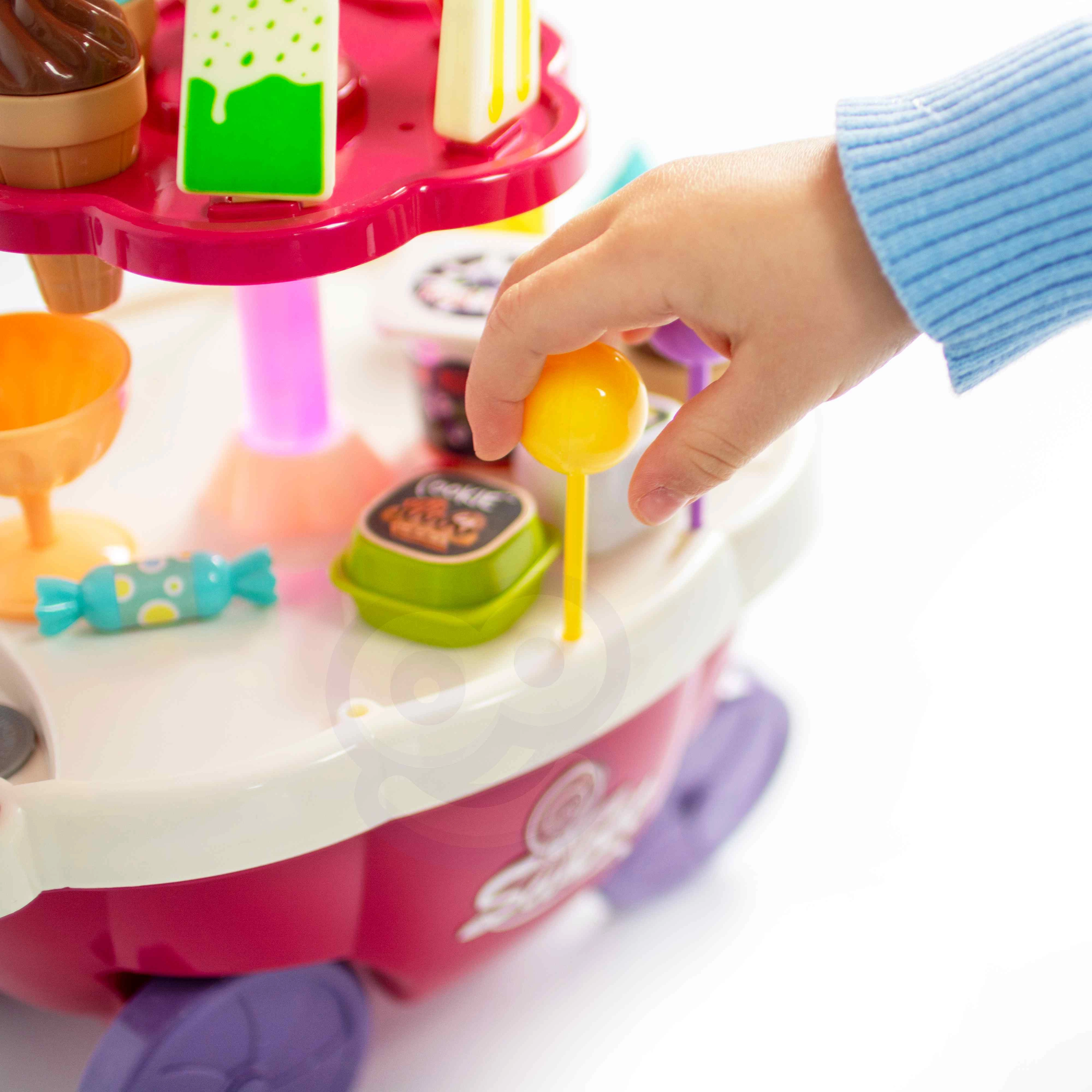 Šī rotaļlieta simulē pārdevēja un pircēja lomas, kas palīdz attīstīt sociālās iemaņas un izpratni. Ratiņos ir daudz kvalitatīvu piederumu un uzlīmju saldējuma un saldumu pārdošanai. Rotaļlieta ļauj apgūt pamata matemātiskās un finanšu prasmes caur simulētiem pirkumiem, izmantojot pievienotās monētas.