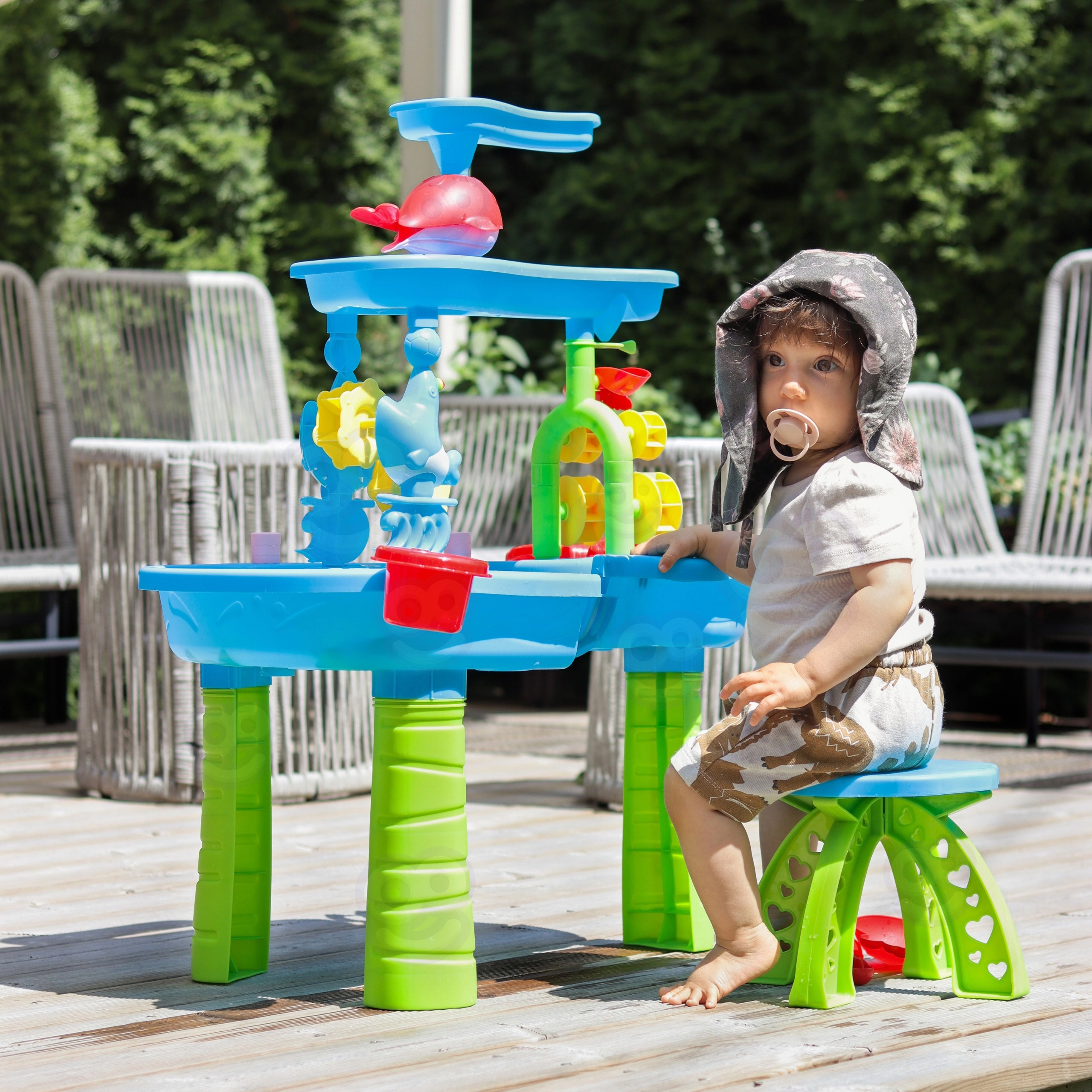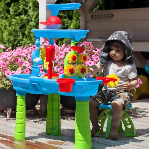 Galds attīsta sīko motoriku, acu–roku koordināciju un radošumu. Izturīgā plastmasas konstrukcija ir piemērota lietošanai gan ārā, gan telpās un ir viegli kopjama. Vecāki novērtēs ātru montāžu/demontāžu un izturīgus materiālus.