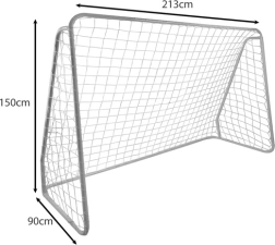 Izmēri 213 x 150 x 90 cm un acu izmērs 10 x 10 cm ļauj to viegli izmantot ar lielāko daļu standarta futbola vārtu.