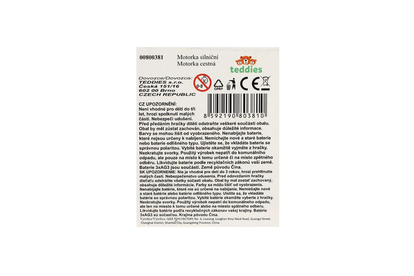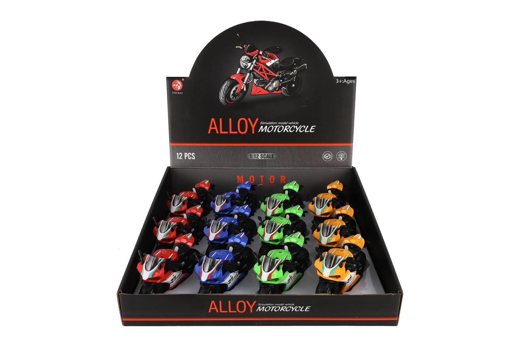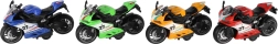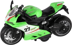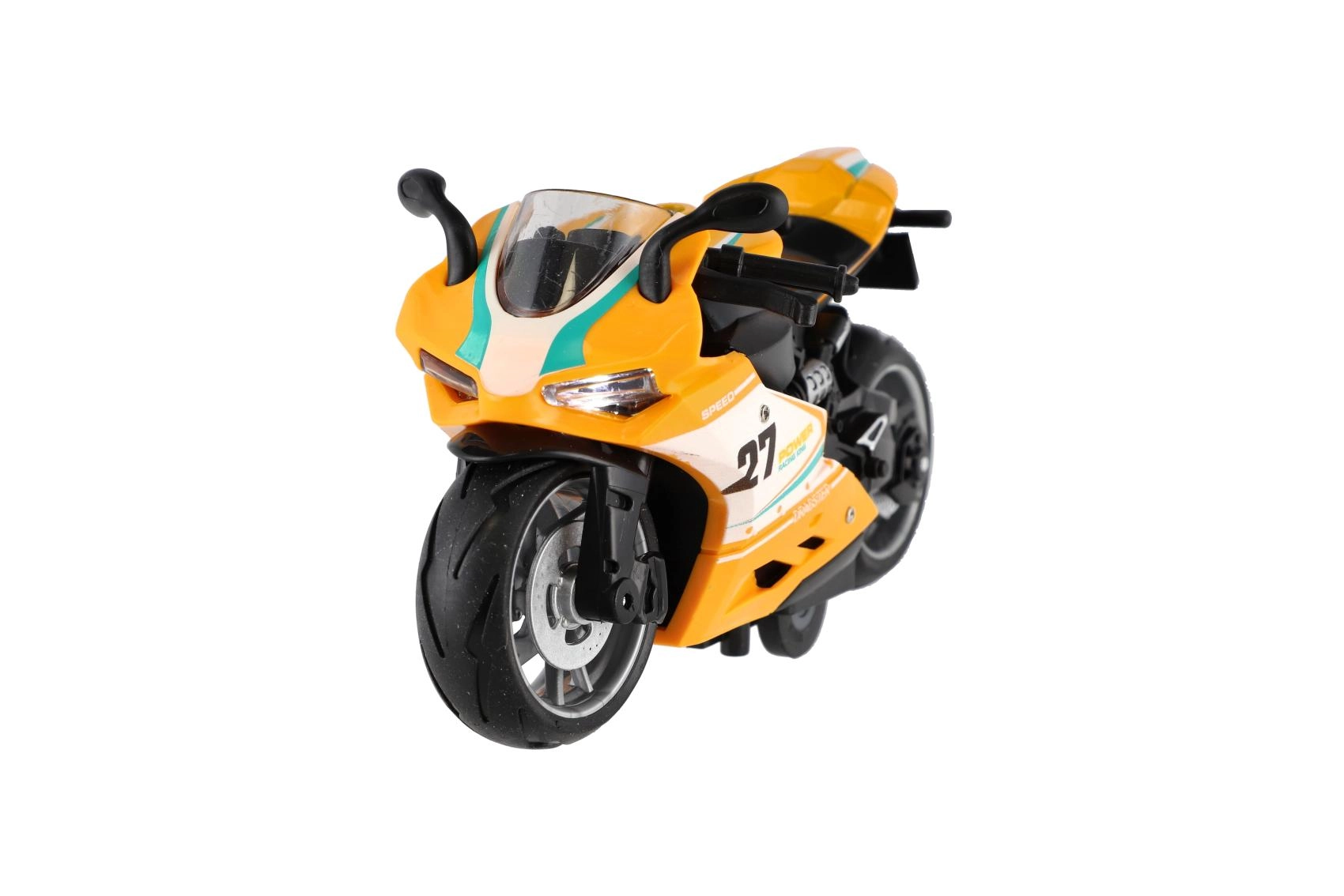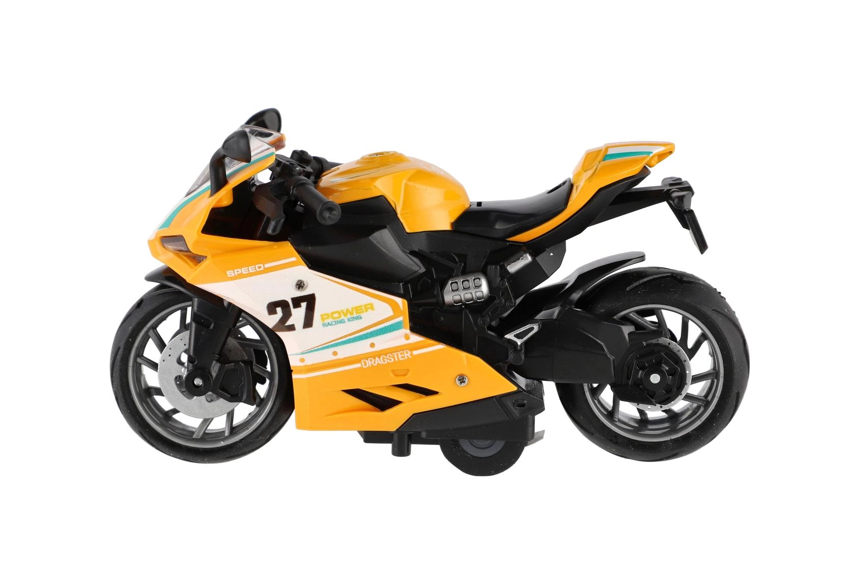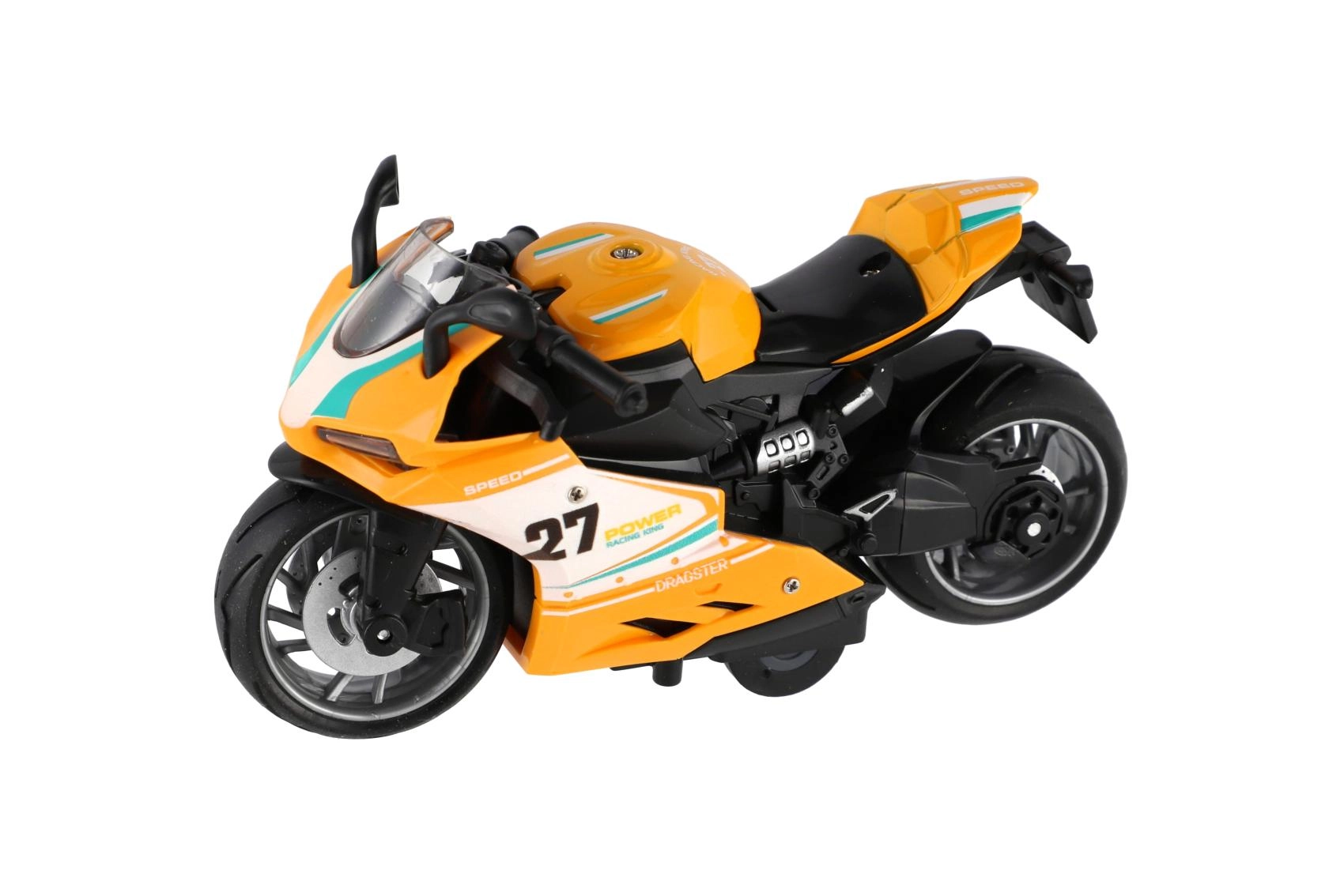 Mazs sacīkšu motocikls ar garumu 13 cm sniedz lielu devu izklaides. Pateicoties atpakaļvilkšanas funkcijai, tas strauji izšaujas uz priekšu pa gludu virsmu, bet gaismas efekti un motora skaņa pastiprina braukšanas reālistisko sajūtu. Ideāli piemērots mazajiem ātruma entuziastiem no 3 gadu vecuma.