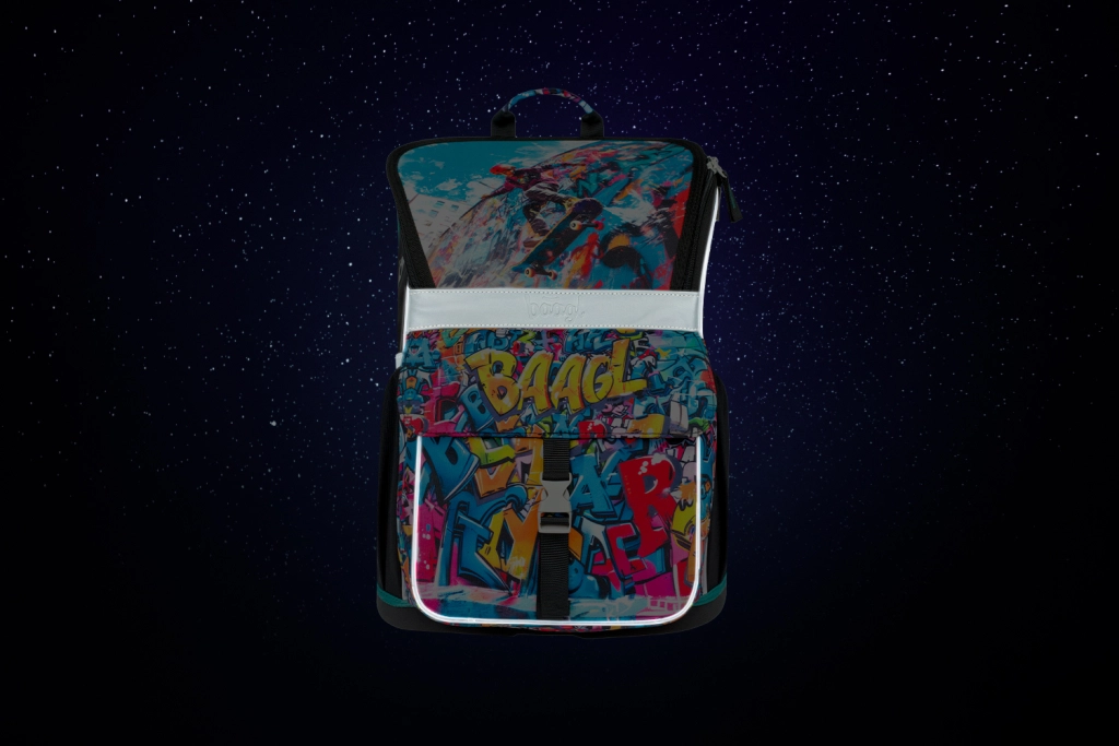 Piesaistiet uzmanību ar BAAGL Zippy Skatepark aktovku, kas ir pilna krāsu un radošu rakstu.