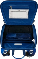Pietiekama uzglabāšanas vieta ar pārskatāmiem nodalījumiem un elastīgu gumiju drošai skolas piederumu novietošanai.