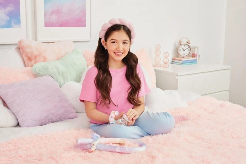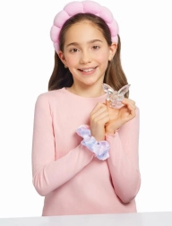 Komplektā ir tauriņveida sprādze ātrai piestiprināšanai un pūkaina stīpiņa, kas tur matus prom no sejas grimu noņemšanas vai mācību laikā. Krāsainais pasteļnošu dizains iepriecinās gan mazās, gan lielākas frizūru mīļotājas.
