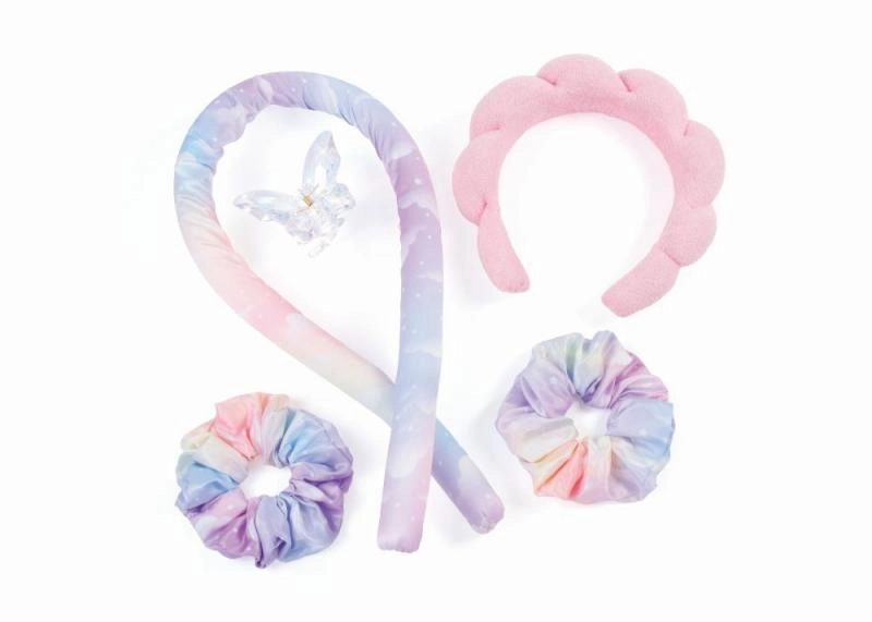 Iepakojumā atradīsiet bezkarstuma lokšķēri, divas scrunchies gumijas, tauriņveida sprādzi un pūkainu stīpiņu – viss krāsās saskaņots, lai ieveidošana sagādātu prieku.