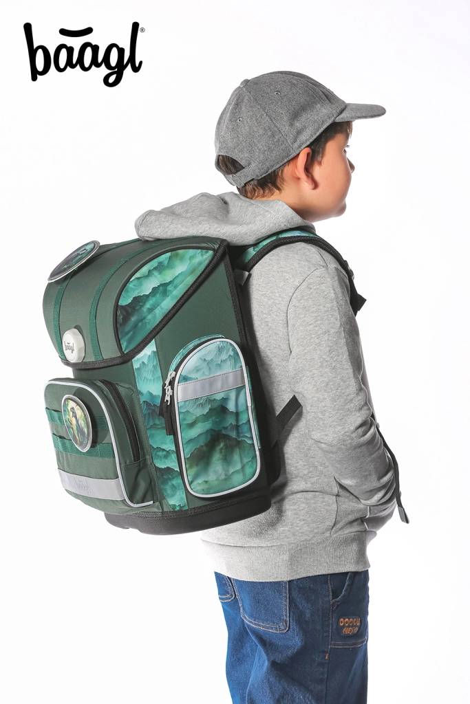Aktovka Baagl Ergo Dino ir aprīkota ar Ergo regulējamo sistēmu, kas ļauj precīzi pielāgot mugursomu jūsu bērna augumam.