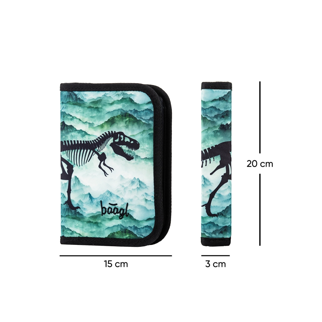 Komplekts Baagl Ergo Dino ir ideāls pirmklasniekiem, kuri meklē komfortu un aizraujošu dizainu. Ergonomiskā aktovka ar anatomiski veidotu muguras daļu nodrošina veselīgu nēsāšanu, pateicoties zemam svaram un stingrai konstrukcijai. Penālis ir izgatavots no pārstrādāta materiāla un piedāvā pietiekami daudz vietas skolas piederumiem.