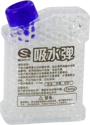 Caurspīdīgais tvertnes konteiners slēpj 1500 gatavas hidrogelā izgatavotas bumbiņas ar diametru 6–7 mm, kas ir gatavas tūlītējai lietošanai bez mērcēšanas. Bumbiņas ir drošas, netoksiskas un bioloģiski noārdāmas, trāpījuma brīdī tās sadalās un neatstāj nekārtību. Piemērotas vairumam ūdens želejbumiņu pistoles, ideāli gan mājās, gan ārā.