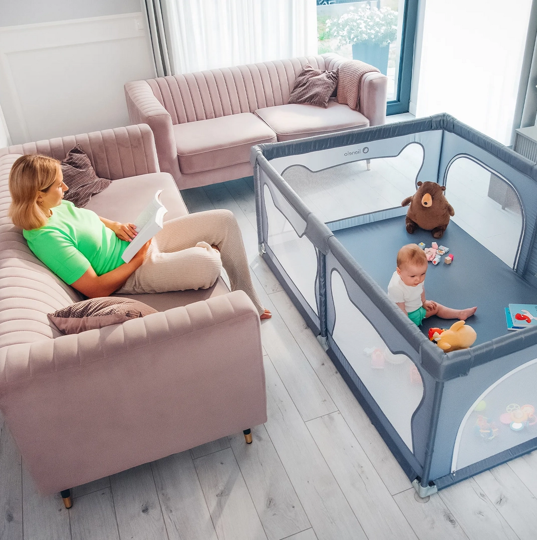 Manēžas uzstādīšana un salocīšana ir nenogurdinoša un neprasa nekādu instrumentu izmantošanu, kas padara to par ideālu risinājumu arī ceļošanai. Manēža ir aprīkota ar aizsargājošām putu caurulēm un konstrukcijas elementiem ārpusē, lai nodrošinātu bērna drošību. Stūros atrodas piesūcekņi, kas notur to stabilā vietā.