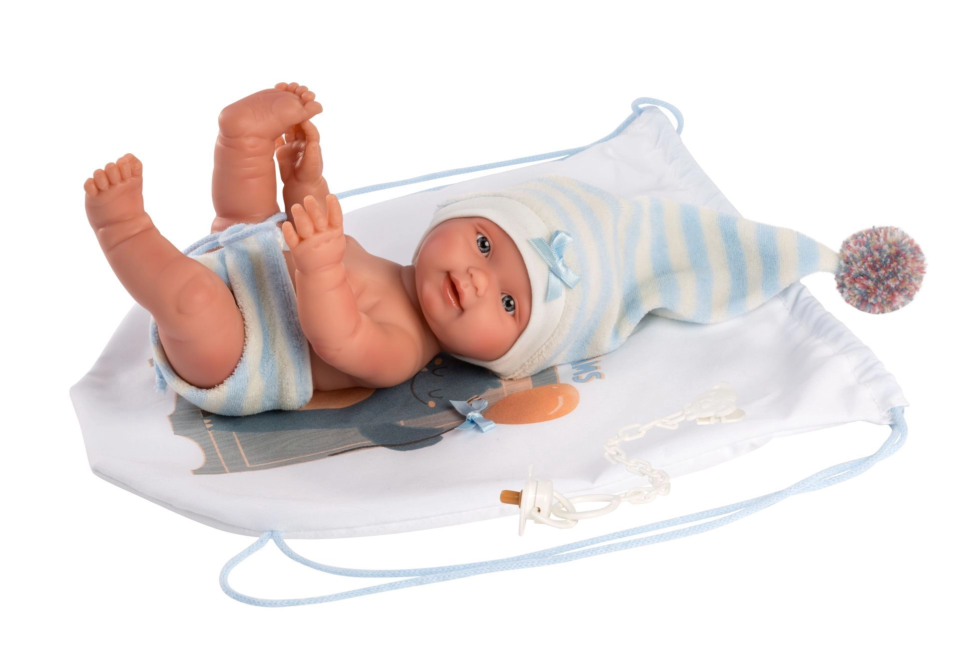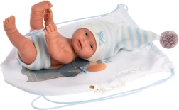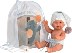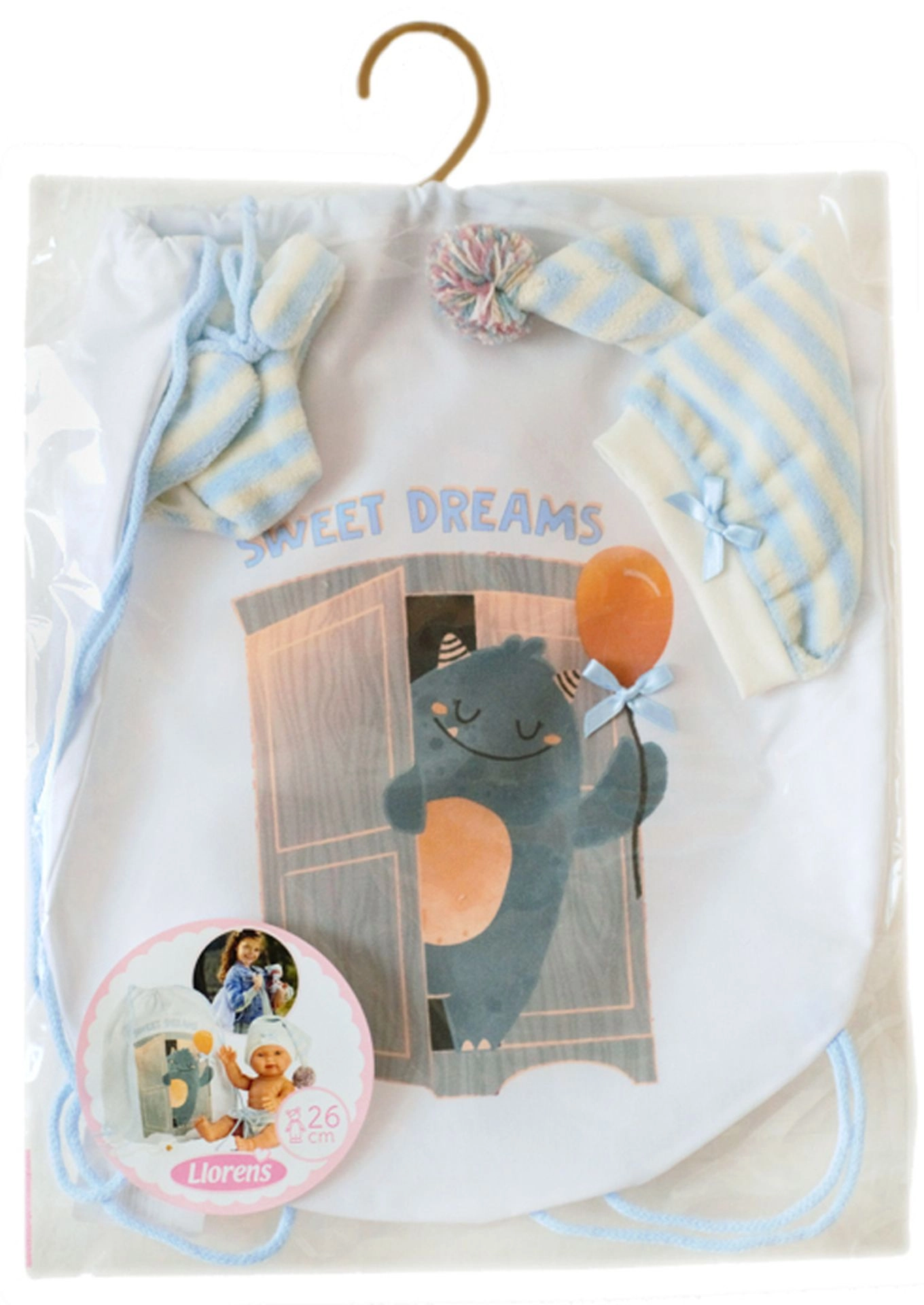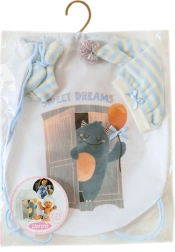 Apģērbs lellītei jaundzimušajai New Born Llorens ir skaists 3 daļu komplekts, kurā ietilpst divi apģērba gabali un mugursoma. Ideāli piemērots 26 cm lellēm.