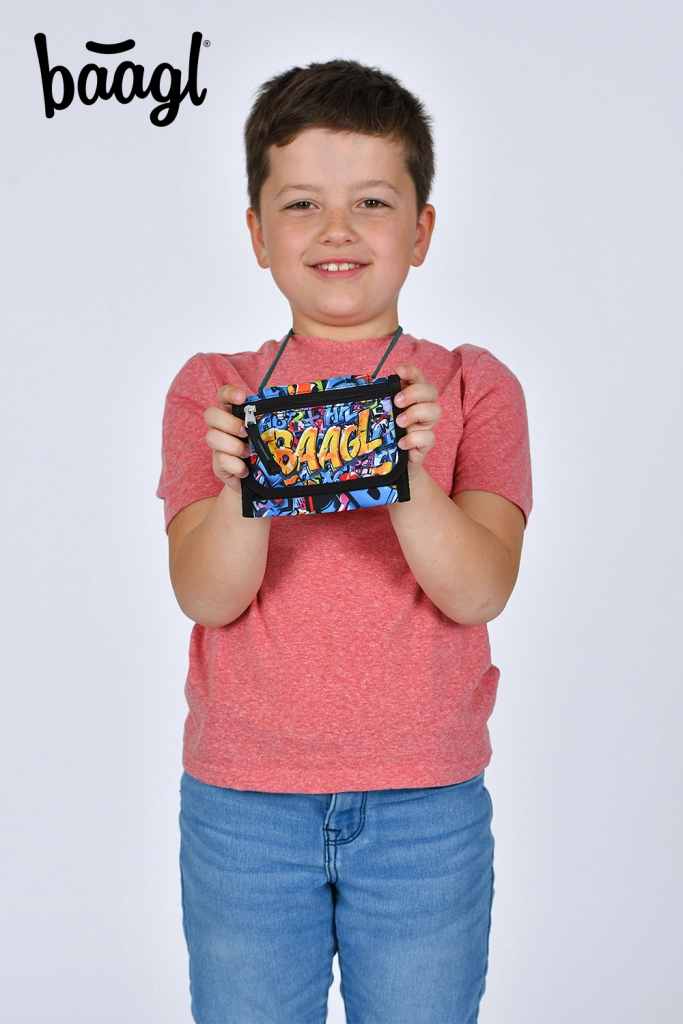 Meklējat drošu un ērtu naudas un sīklietu glabāšanu bērniem un pusaudžiem? BAAGL kakla maks ar Skatepark motīvu piesaista ar krāsainu grafiti stilu un pārdomātu nodalījumu izkārtojumu. Pateicoties regulējamam siksnas garumam ar drošības aizdambi, to var nēsāt ērti un vienmēr turēt redzeslokā.