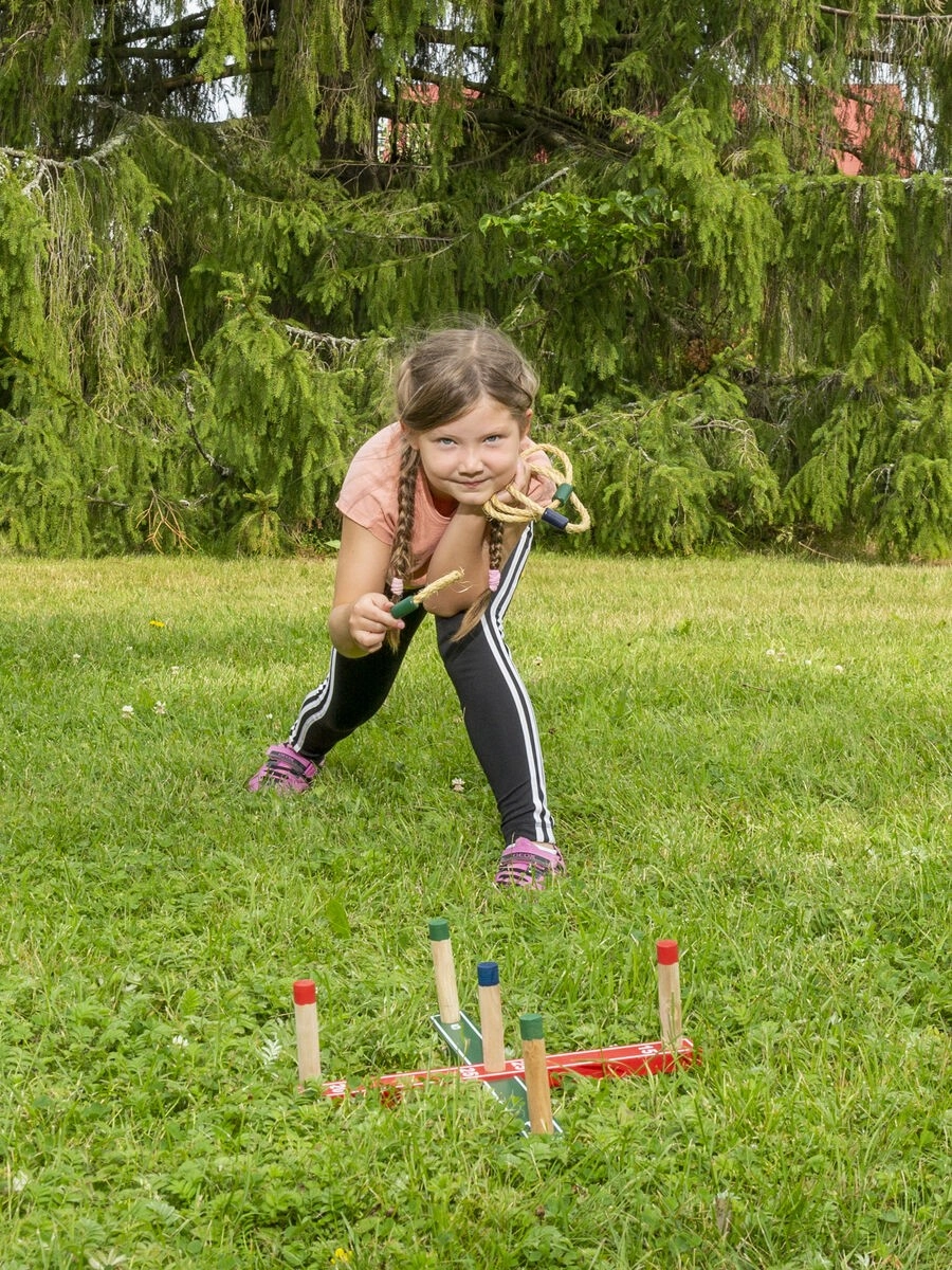 Pateicoties izturīgam kokam un viegliem riņķiem, spēle ir ideāla bērniem un pieaugušajiem. To ir viegli pārnēsāt un ātri sagatavot spēlei uz zāliena, dārzā, parkā vai atvaļinājumā.