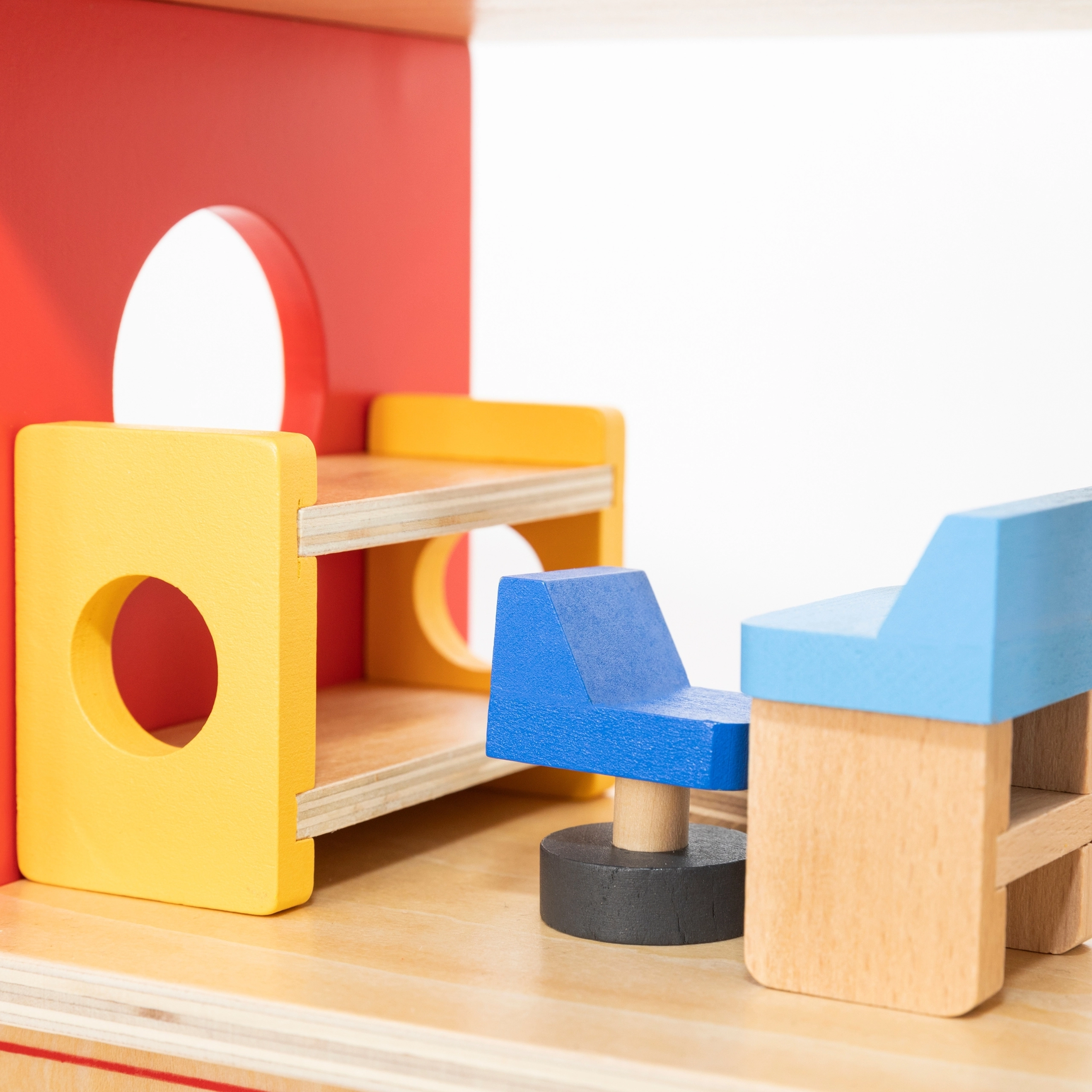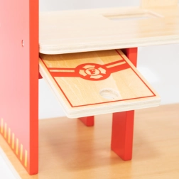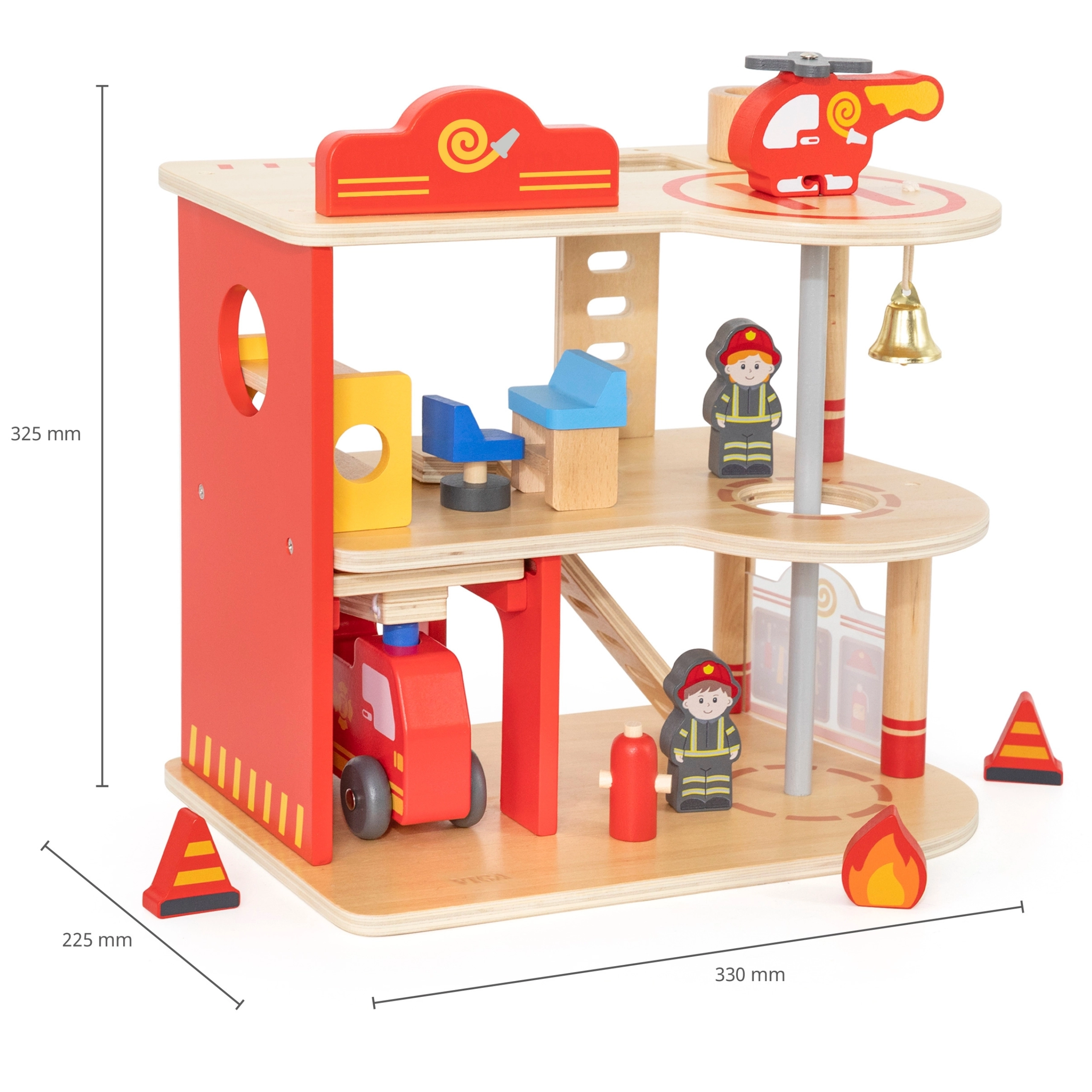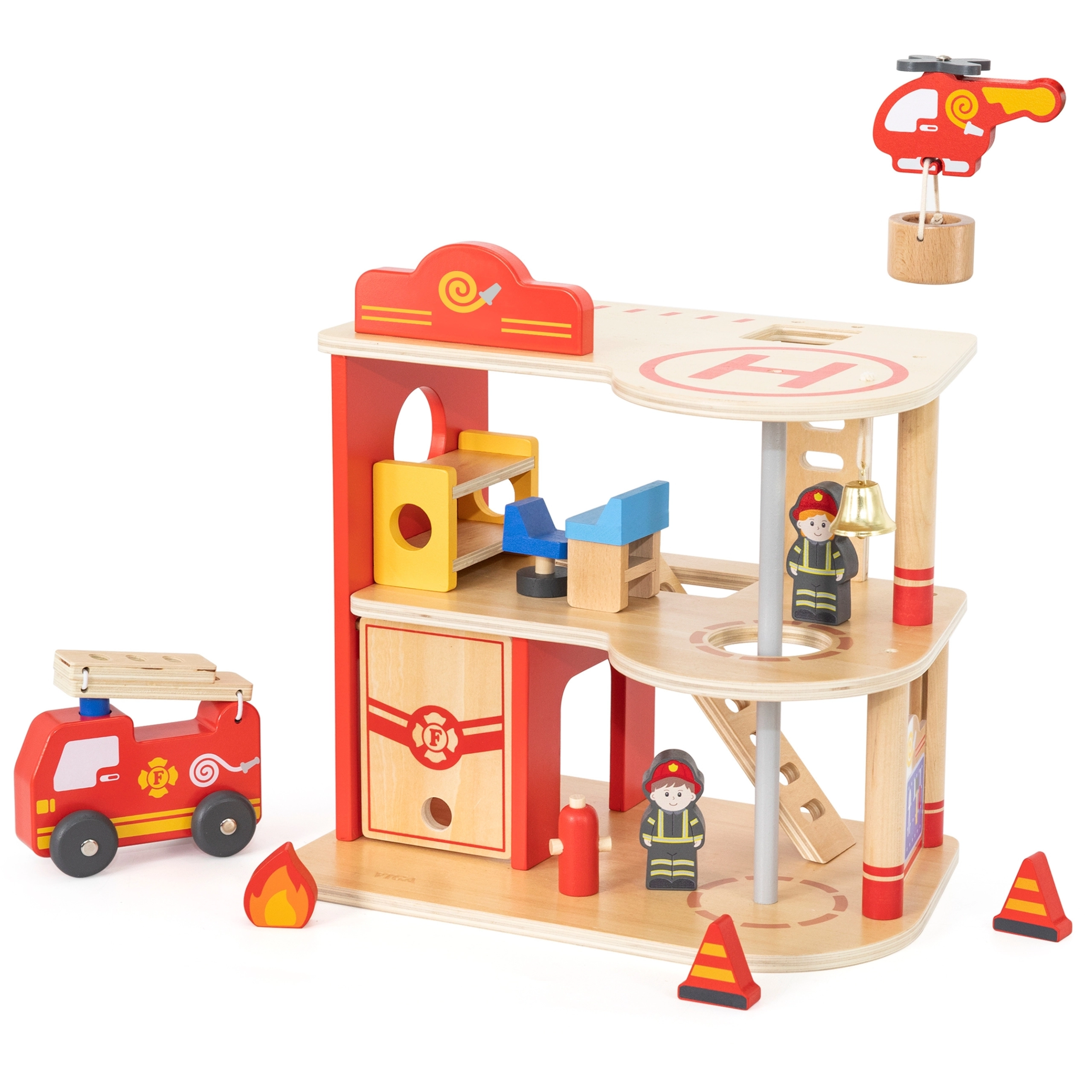 Šī robustā koka ugunsdzēsēju stacija ar trim līmeņiem sniedz bērniem no 3 gadu vecuma stundām ilgu aizraujošu izklaidi. Pirmajā stāvā ir garāža ugunsdzēsēju automašīnai un vieta aprīkojumam, otrajā stāvā mājīga atpūtas zona ar zvaniņu un stieni ātrai nolaidei, trešajā stāvā atrodas heliports ugunsdzēsēju helikopteram.