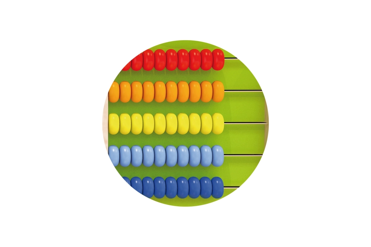 Piecas krellīšu rindas spilgtās krāsās mudina bērnus dabiski iepazīt skaitļus, saskaitīšanu un atņemšanu rotaļīgā veidā.