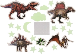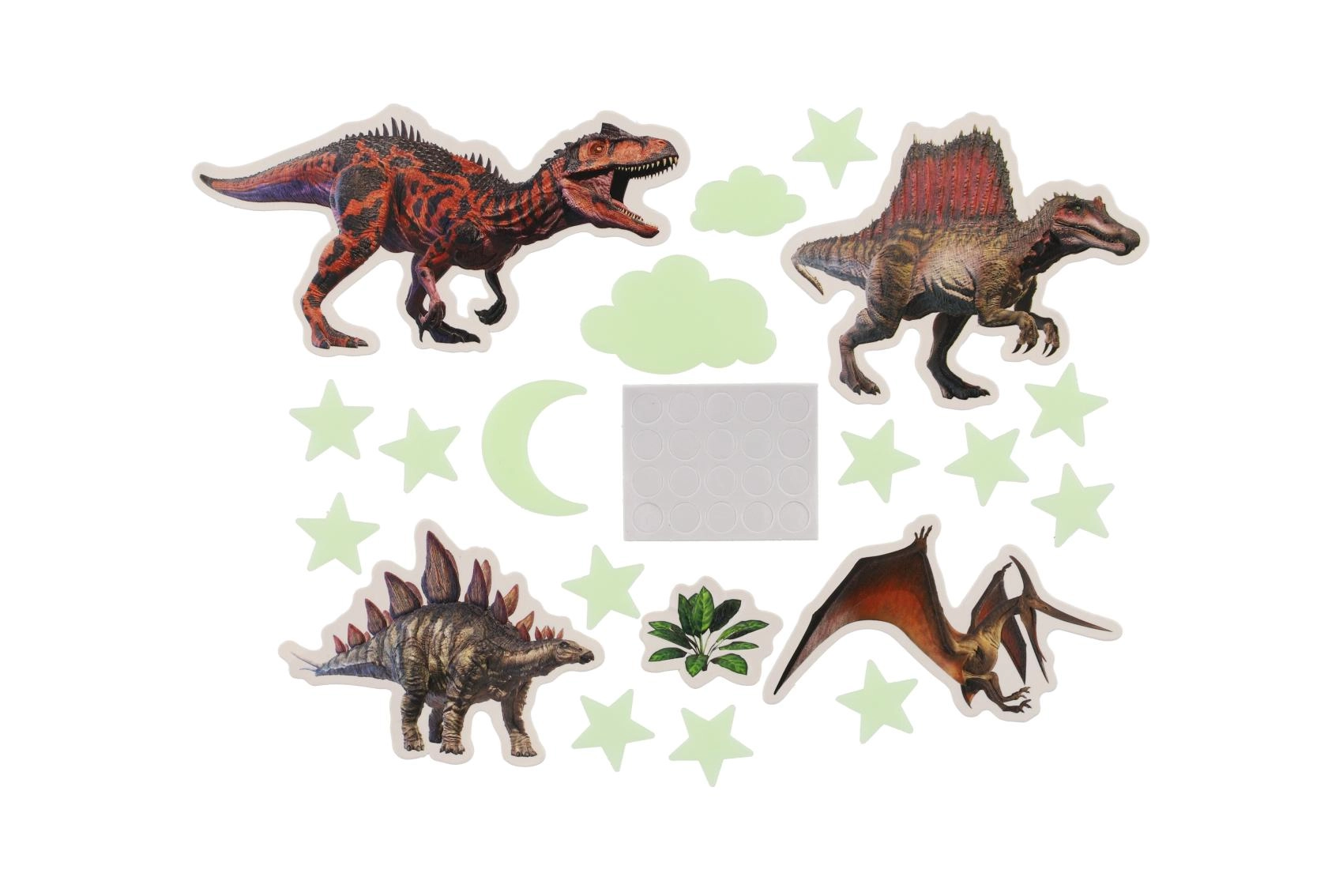 Pārvērtiet katru vakaru piedzīvojumā ar dinozauru dekorācijām, kas pēc izgaismošanas spīd tumsā. Tās viegli piestiprinās pie sienas un griestiem un dienas laikā kalpo kā rotaļīga rota, bet naktī kā maiga orientējoša gaisma.