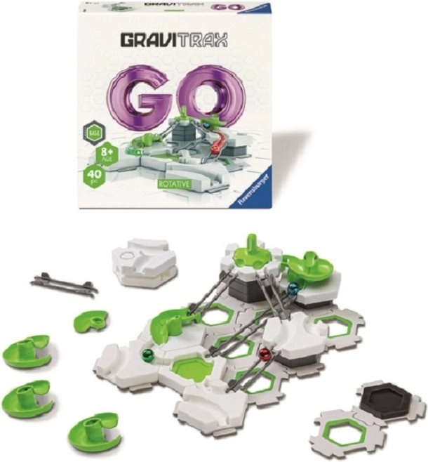 Komplektā GraviTrax GO Rotative ir 40 unikāli būvelementi, ar kuriem varat sākt veidot savas pirmās bumbiņu trases un izbaudīt aizrautību ar dinamisku papildinājumu – spirāli. Šis aizraujošais papildinājums piešķir jūsu trasēm dinamiku un oriģinalitāti.