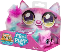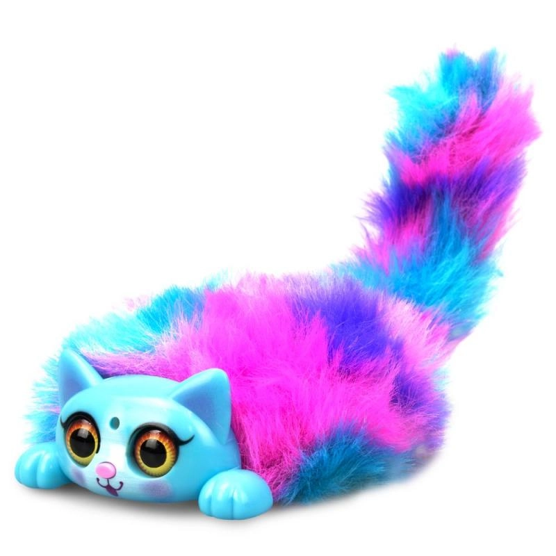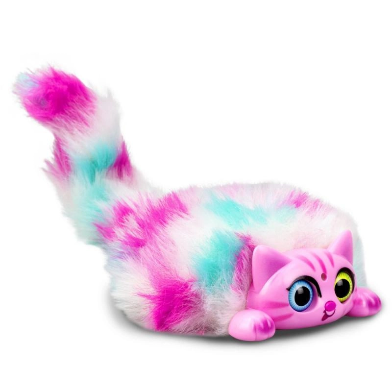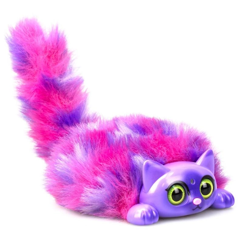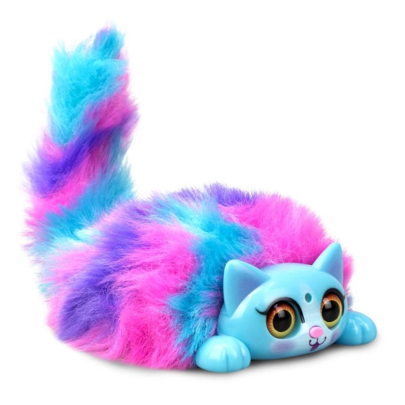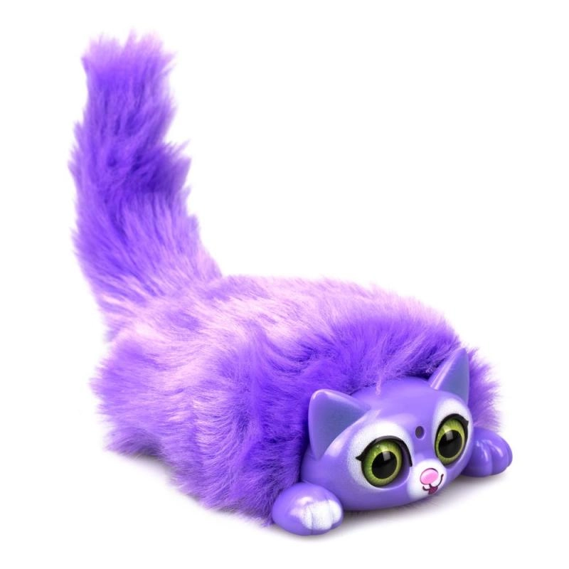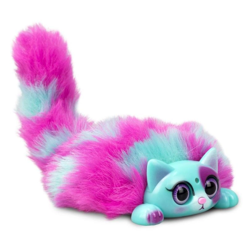 Atklājiet košo, daudzkrāsaino interaktīvo kaķēnu Mini Purrs, kas mirdz un murrā, kad to paglauda. Reaģē uz pūtienu un manuālu astes kustināšanu.