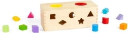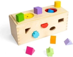 Bagātiniet savu bērnu sensorās sajūtas ar šo koka noslēpumu kasti. Ievietojiet 10 formas atbilstošajos atvērumos kastes sānos. Caur diviem atvērumiem augšpusē bērni var ielikt rokas, aptaustīt un atpazīt formas kastes iekšpusē, tādējādi uzlabojot smalko motoriku un acu-roku koordināciju.
