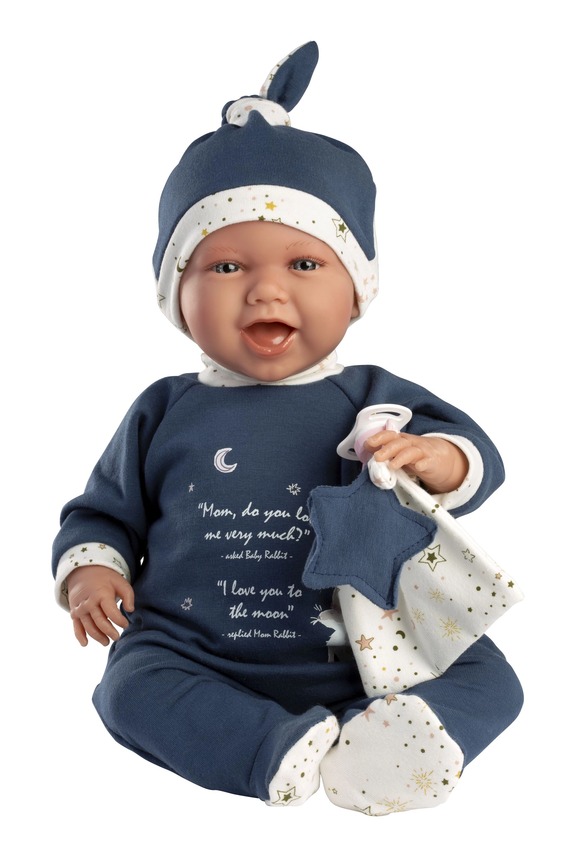 Palutini savu lellīti ar stilīgu tērpu – šis 3 daļu komplekts zīdainim NEW BORN, izmēram 40–42 cm, satur 2 apģērba gabalus un mīkstu dekoratīvu mīkstmantiņu. Kvalitatīva roku darbs Spānijā nodrošina precīzu izstrādi un ilgu kalpošanu. Praktiskais iepakojums ar plastmasas pleķeni atvieglo glabāšanu. Piemērots no 3 gadu vecuma.