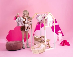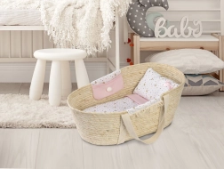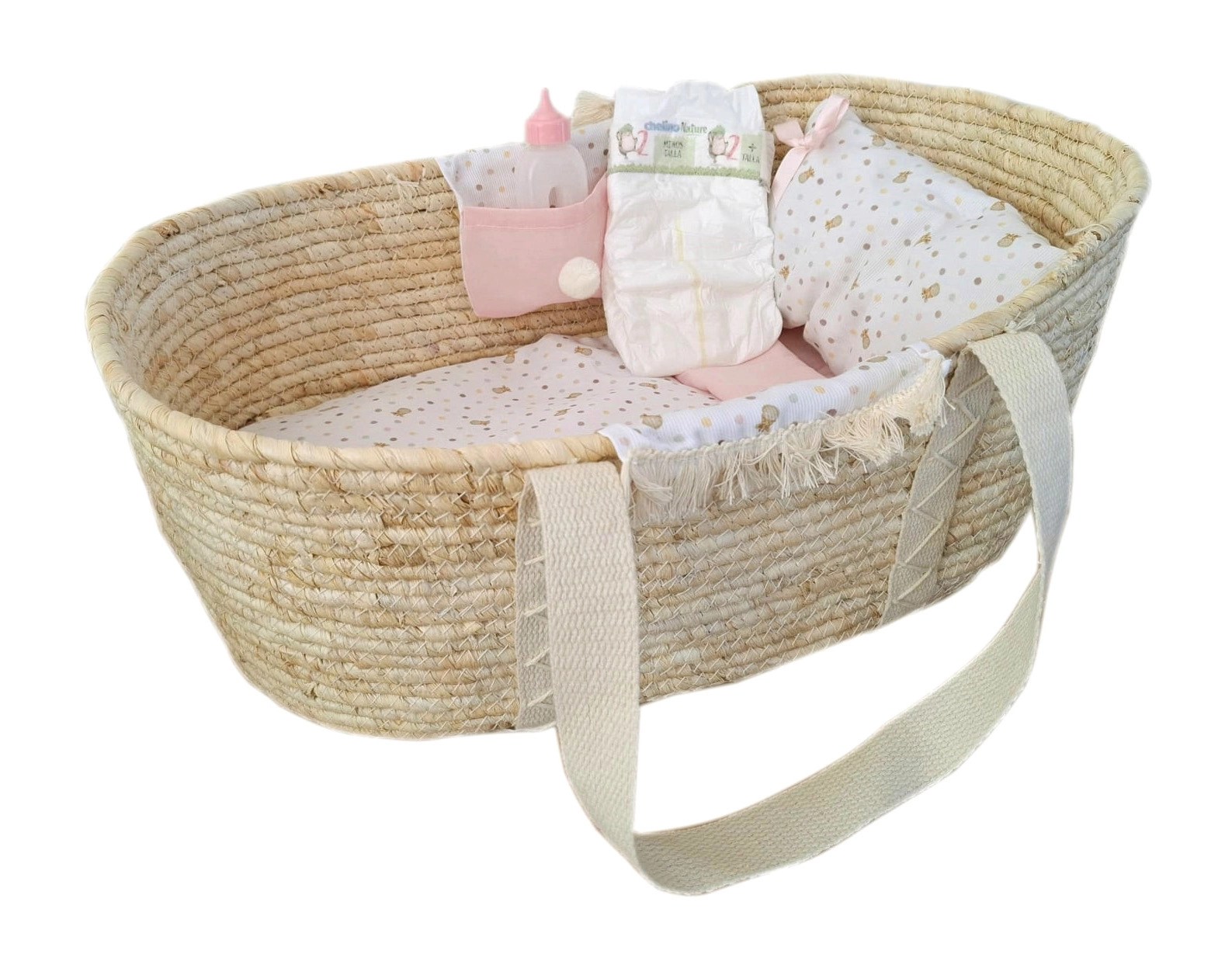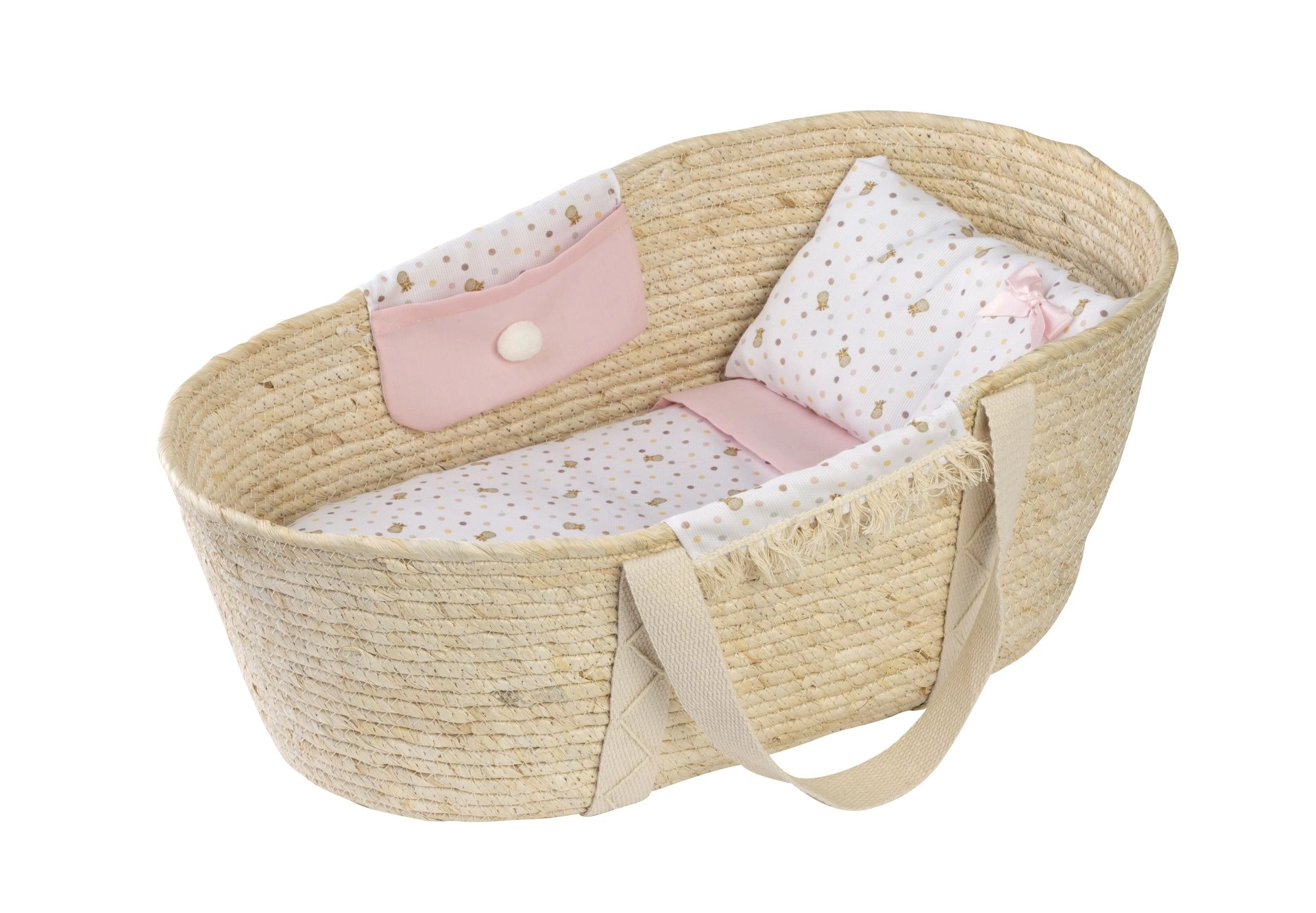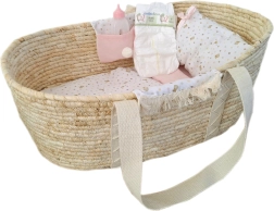 Šis skaistais Mozus groziņš ir aprīkots ar auduma kabatiņām abās pusēs un ietver dekoratīvu sedziņu, spilvenu un matraci. Tas ir piemērots lellēm ar izmēru 40–45 cm, un lieliski noder arī kā glabāšanas vieta citām rotaļlietām, piemēram, mīkstajām rotaļlietām.