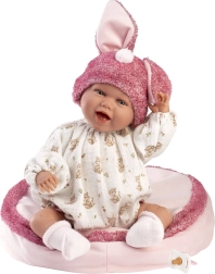Reālistiska lelle–zīdainis no Llorens ir ideāla dāvana bērniem no 3 gadu vecuma. Šis skaistais zīdainis, nospiežot uz krūtīm, sāk smieties un saka “mamma” un “tētis”. Mīkstais auduma korpuss un kustīgie locītavu savienojumi ļauj viegli mainīt pozu.