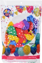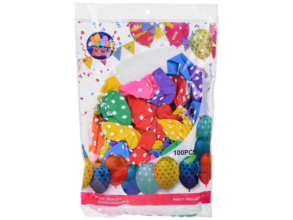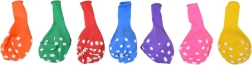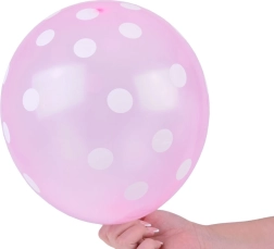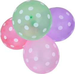 Krāsainie baloni ar baltiem punktiņiem ir lieliska izvēle jebkuriem svētkiem. Tie ir izgatavoti no izturīga materiāla, tāpēc der gan dekorēšanai, gan izklaidei. Iepakojumā atradīsiet dažādu krāsu balonu maisījumu, kas piešķirs mirdzumu jebkurai telpai.