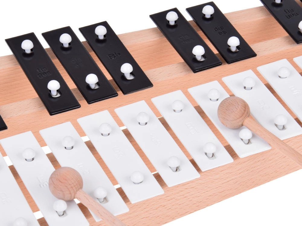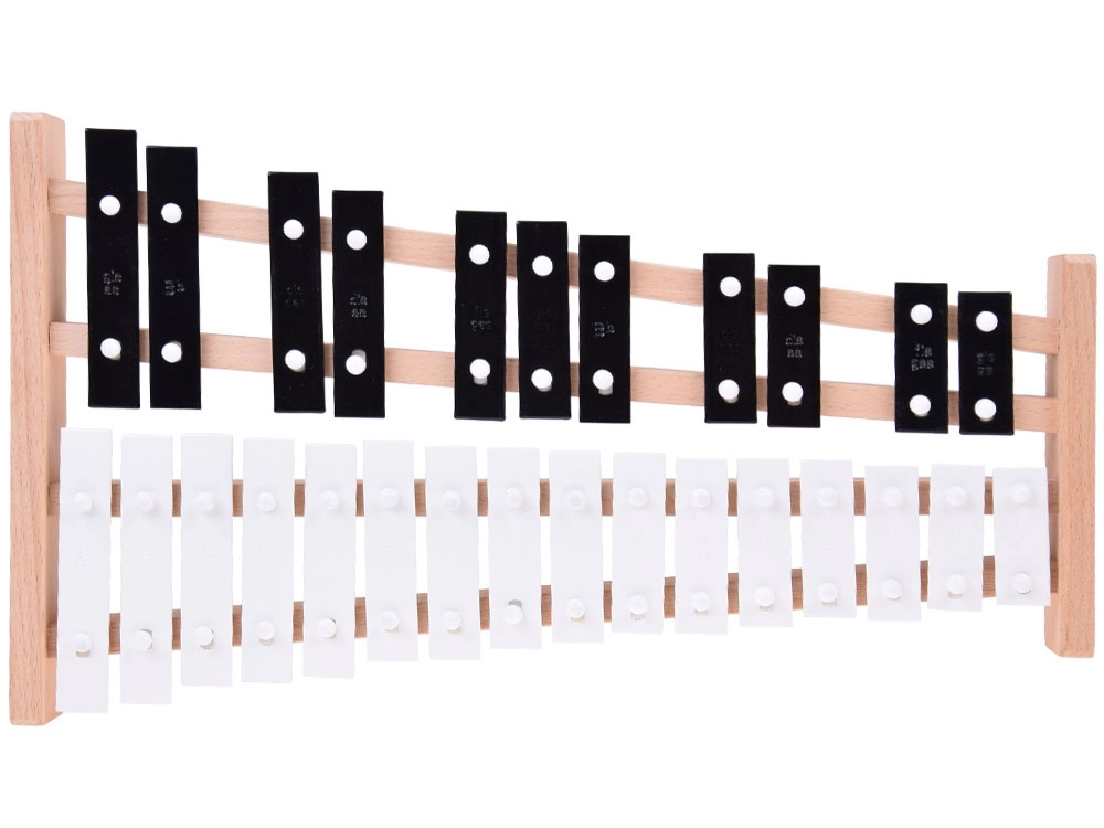 - Iespiestie toņu apzīmējumi uz plāksnītēm atvieglo spēli, īpaši iesācējiem.