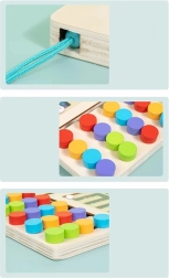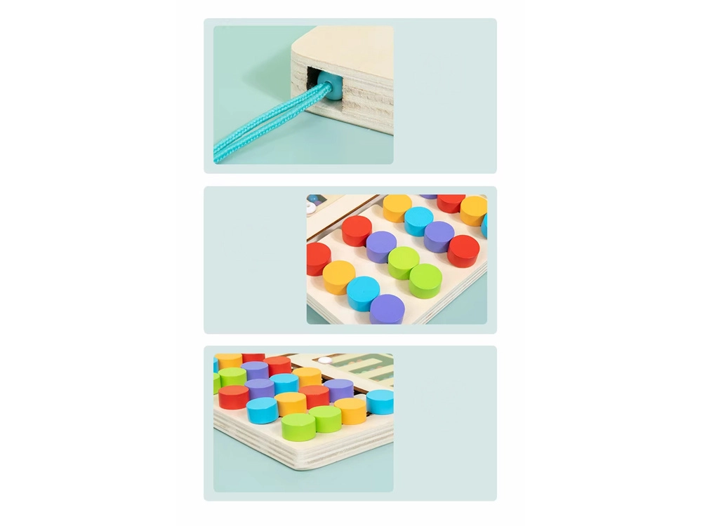 Koka galda spēlei ir dažādi raksti, lai viegli apgūtu krāsas un koordināciju. Veicina bērnu radošumu un koncentrēšanos.