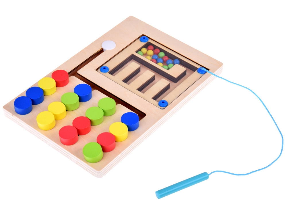Labirints ar magnētisko kociņu ļauj bērniem pārvietot bumbiņas pa trasi, kas uzlabo loģisko domāšanu un sniedz izklaidi.