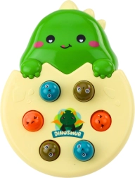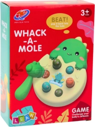Prasmju spēle Whack-a-Mole, kas veidota kā mīlīgs dinozaurs, ir lieliska bērniem, kuri vēlas izklaidēties un vienlaikus attīstīt savas spējas. Spēles mērķis ir sist pa krāsainajām galviņām, kas parādās no atverēm, kas prasa ātru reakciju un koordināciju. Pateicoties drošajam āmuriņam, kas paredzēts mazām rokām, spēle ir ne tikai jautra, bet arī droša.