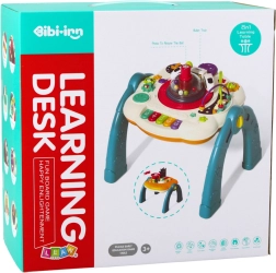 Vienā galda pusē ir interaktīvais izglītojošais panelis ar daudzveidīgiem efektiem, kas veicina spēli un izpēti. Tas piedāvā skaņas un gaismas efektus, kā arī kustīgus elementus, piemēram, krāsainu klavierīti, bungdziņu un rotējošus ratiņus. Šī aktivitāte palīdz attīstīt maņas, sīko motoriku, acu–roku koordināciju un loģisko domāšanu.