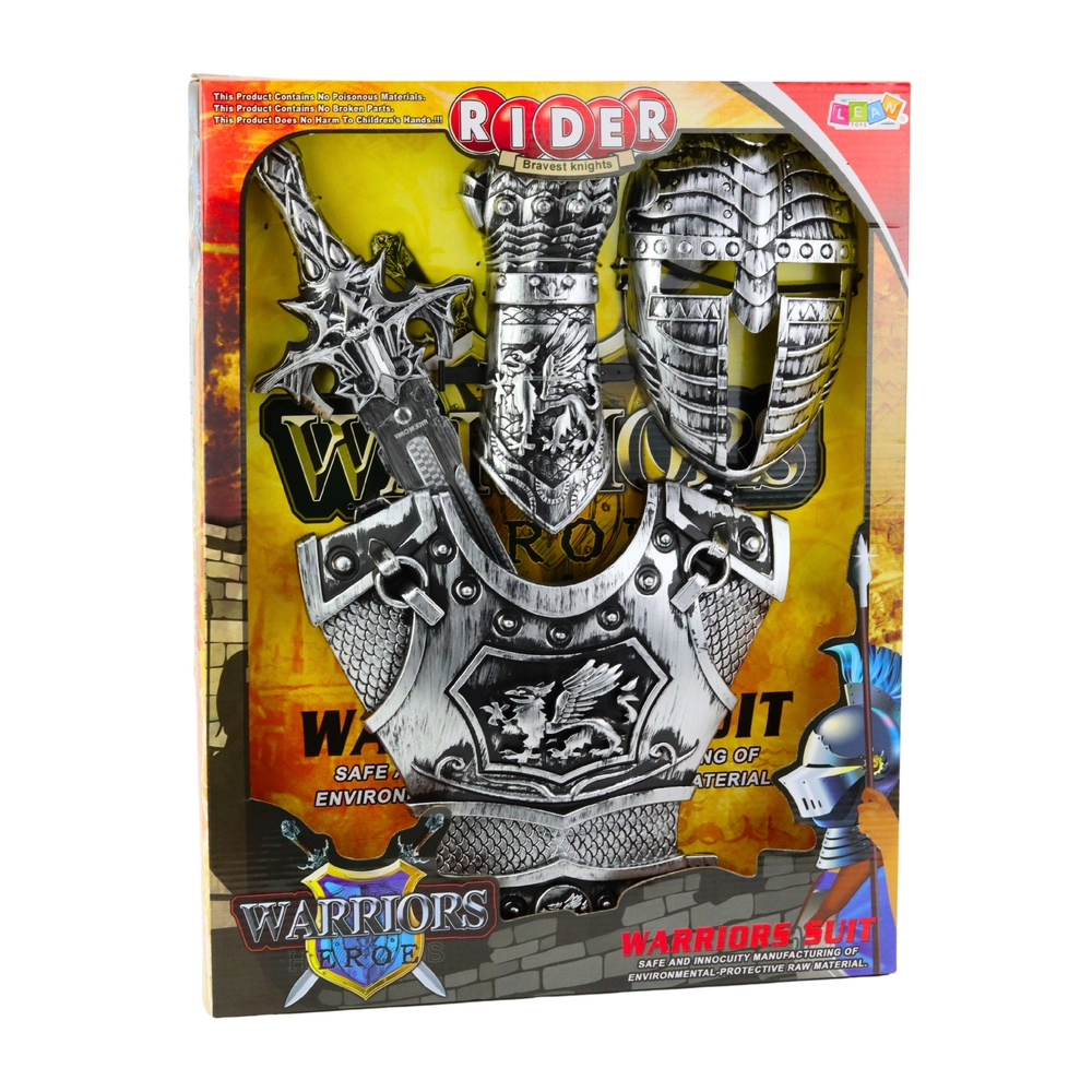 Bruņas veidotas ar uzsvaru uz detaļām un raksturīgiem gravējumiem, kas piešķir realistisku izskatu. Universālais izmērs ļauj, lai komplekts derētu lielākajai daļai pirmsskolas un agrīna skolas vecuma bērnu. Komplekts iepakots pievilcīgā dāvanu iepakojumā, lieliski piemērots kā dāvana.
