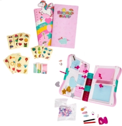 - Slepenā dienasgrāmata – glabāšanas nodalījumi, piezīmju klade, uzlīmes un dekoratīvie piederumi, atslēgu komplekts slēptajiem nodalījumiem, rokassprādžu izgatavošanas komplekts