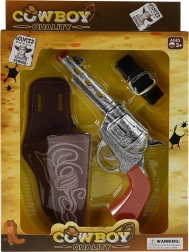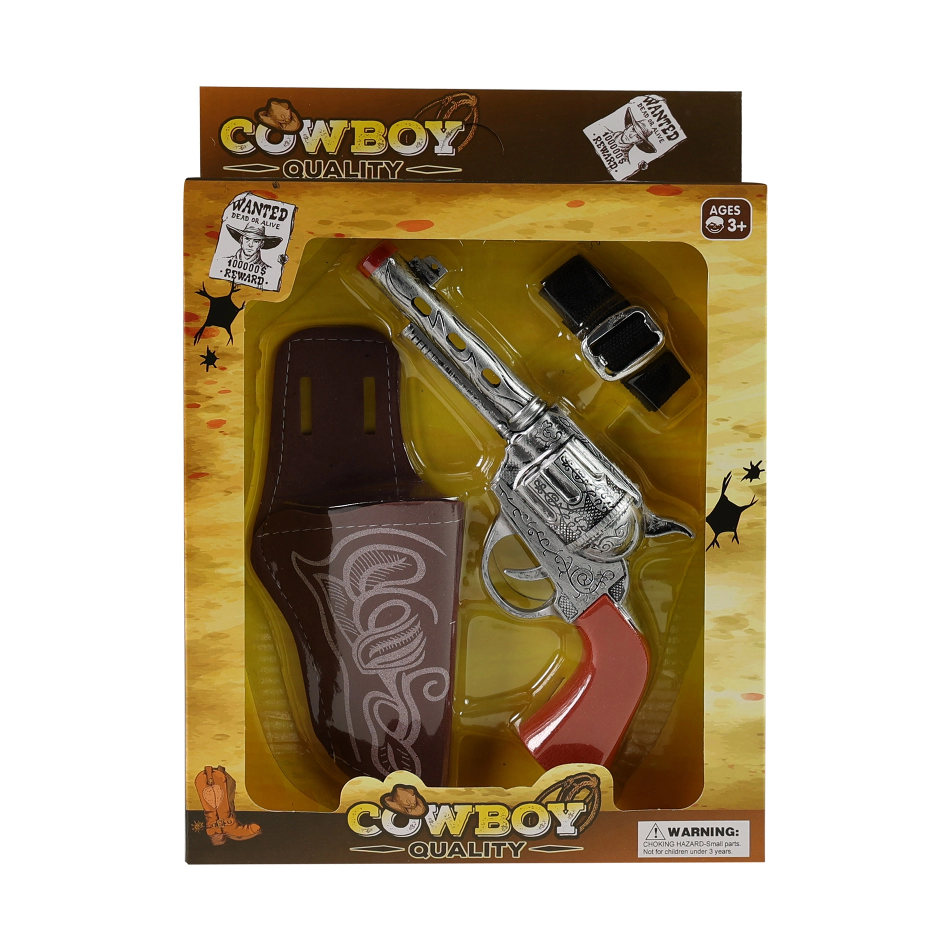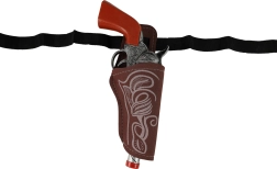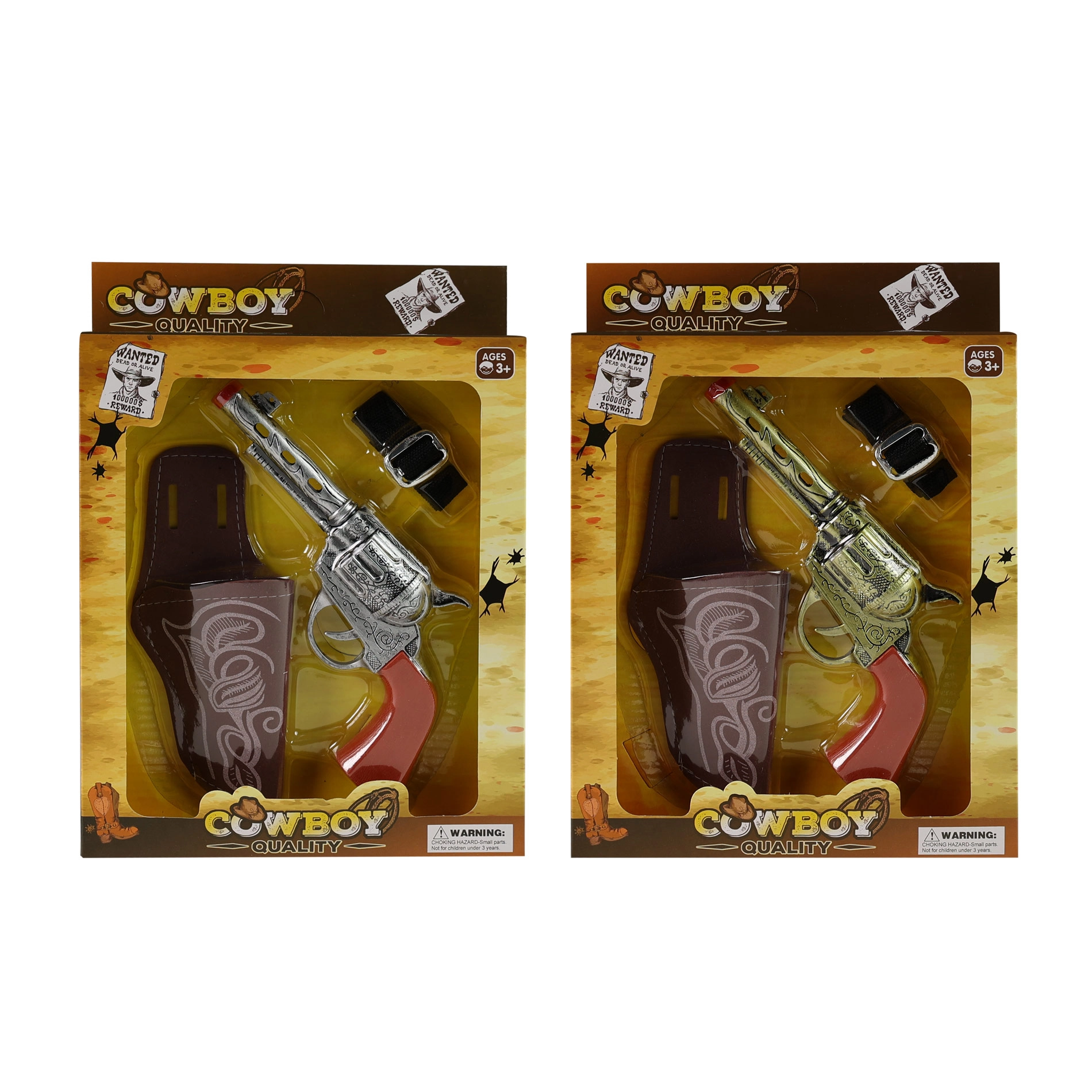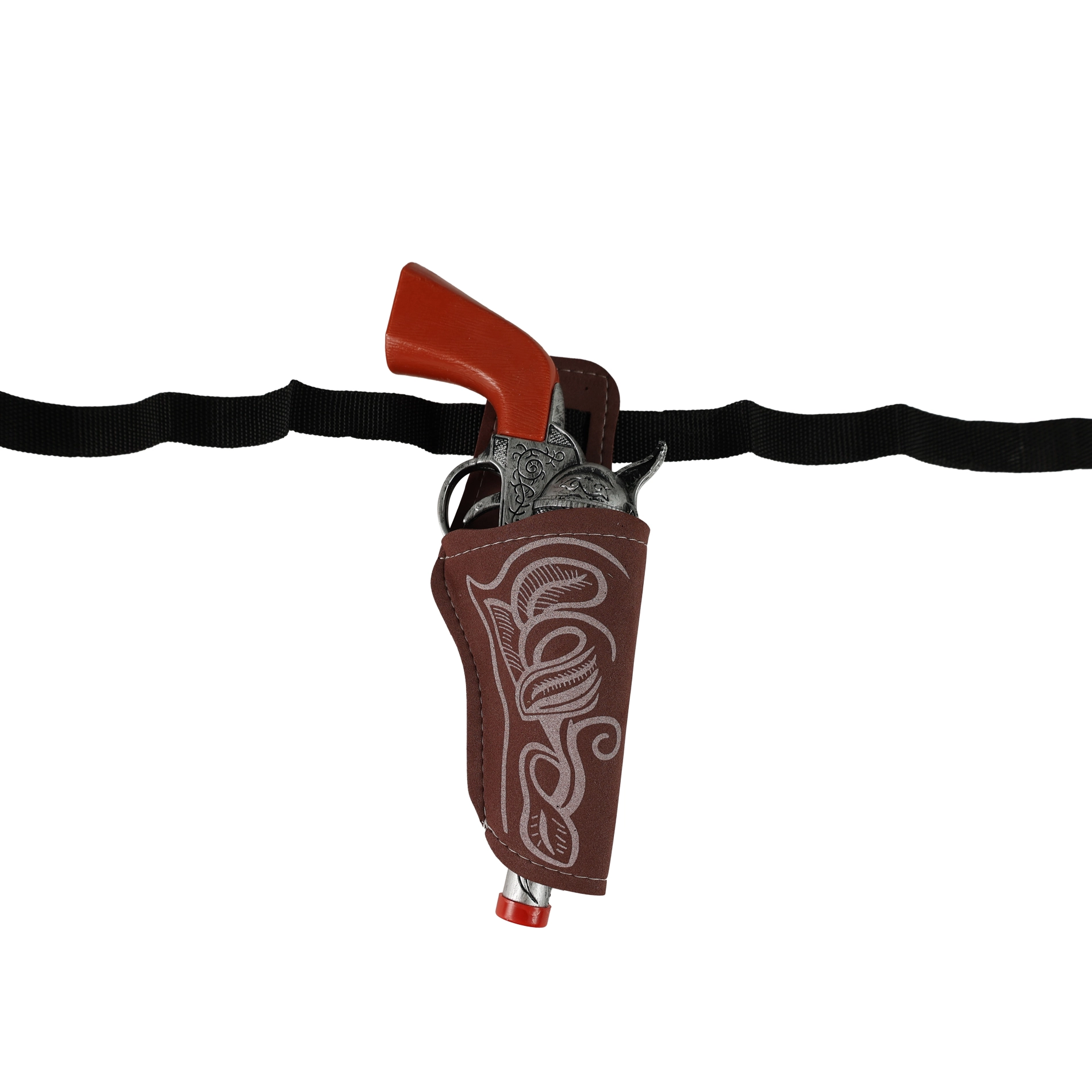Kļūsti par Mežonīgo rietumu varoni ar šo ērtu komplektu mazajiem kovbojiem! Tajā ietilpst pistole ar skaņas efektiem, maksts un josta piestiprināšanai.
