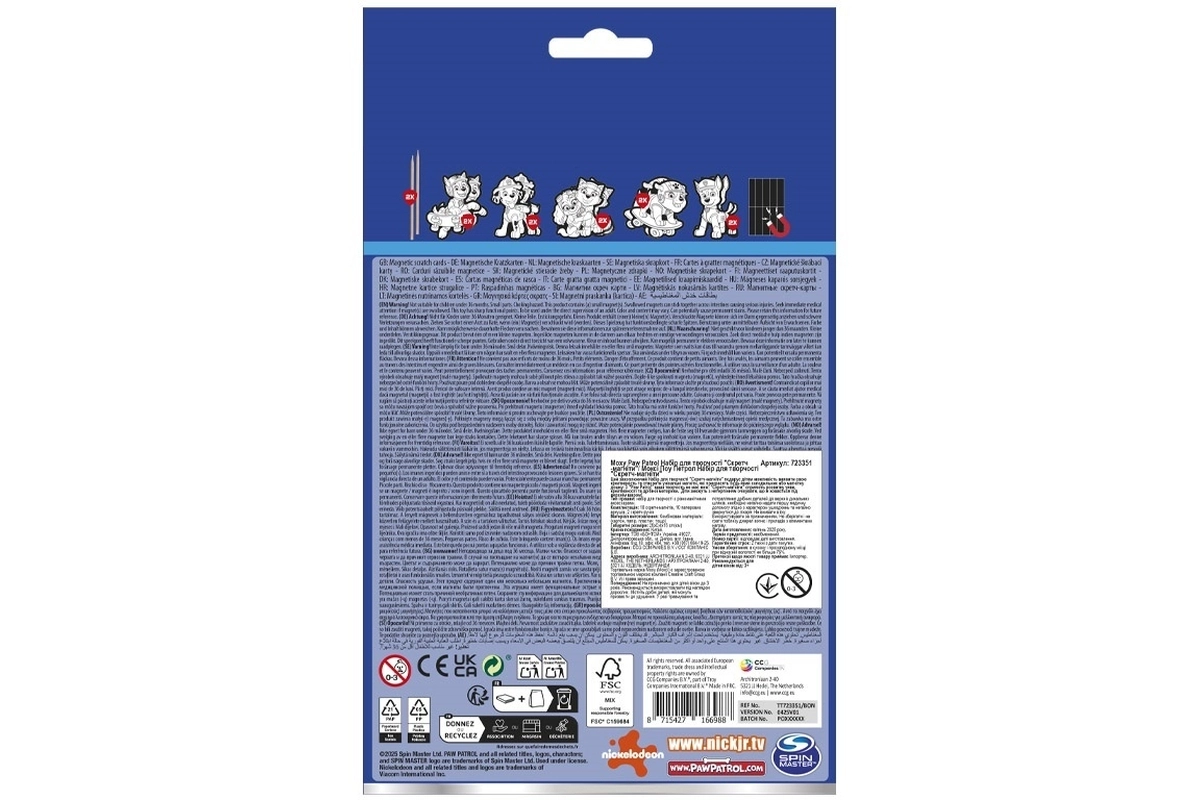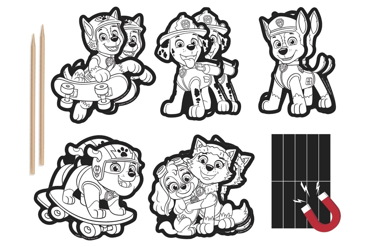 Vienkāršā darbība piemērota arī mazākiem bērniem: paņemiet skrāpējamo pildspalvu, viegli noskrāpējiet laukumus pēc savas fantāzijas un atklājiet krāsainus motīvus ar iemīļotajiem varoņiem no seriāla “Paw Patrol”. Gatavos attēlus pielīmējiet pie pievienotajiem magnētiem – un viss gatavs.