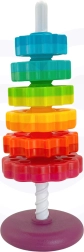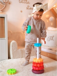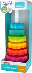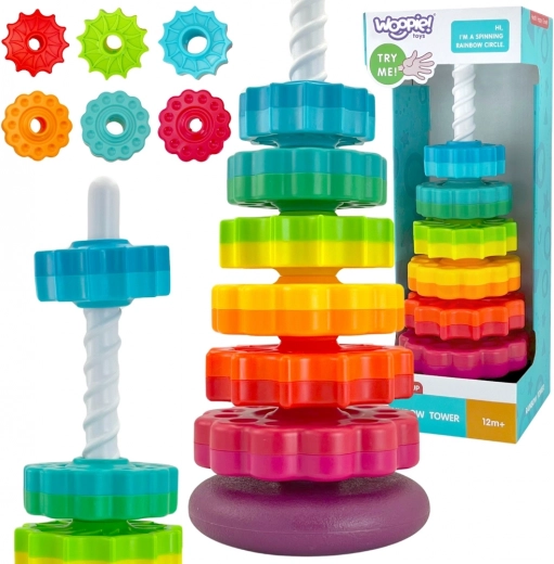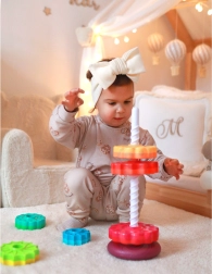 Izklaidēt bērnu vairākas stundas? To spēj rotaļlieta Ieliektais tornis no Woopie, kas ne tikai izklaidē, bet arī māca. Izveidojiet savu krāsaino torni no sešiem divkrāsu diskiem un vērojiet, kā viss pārvēršas burvīgās formās.