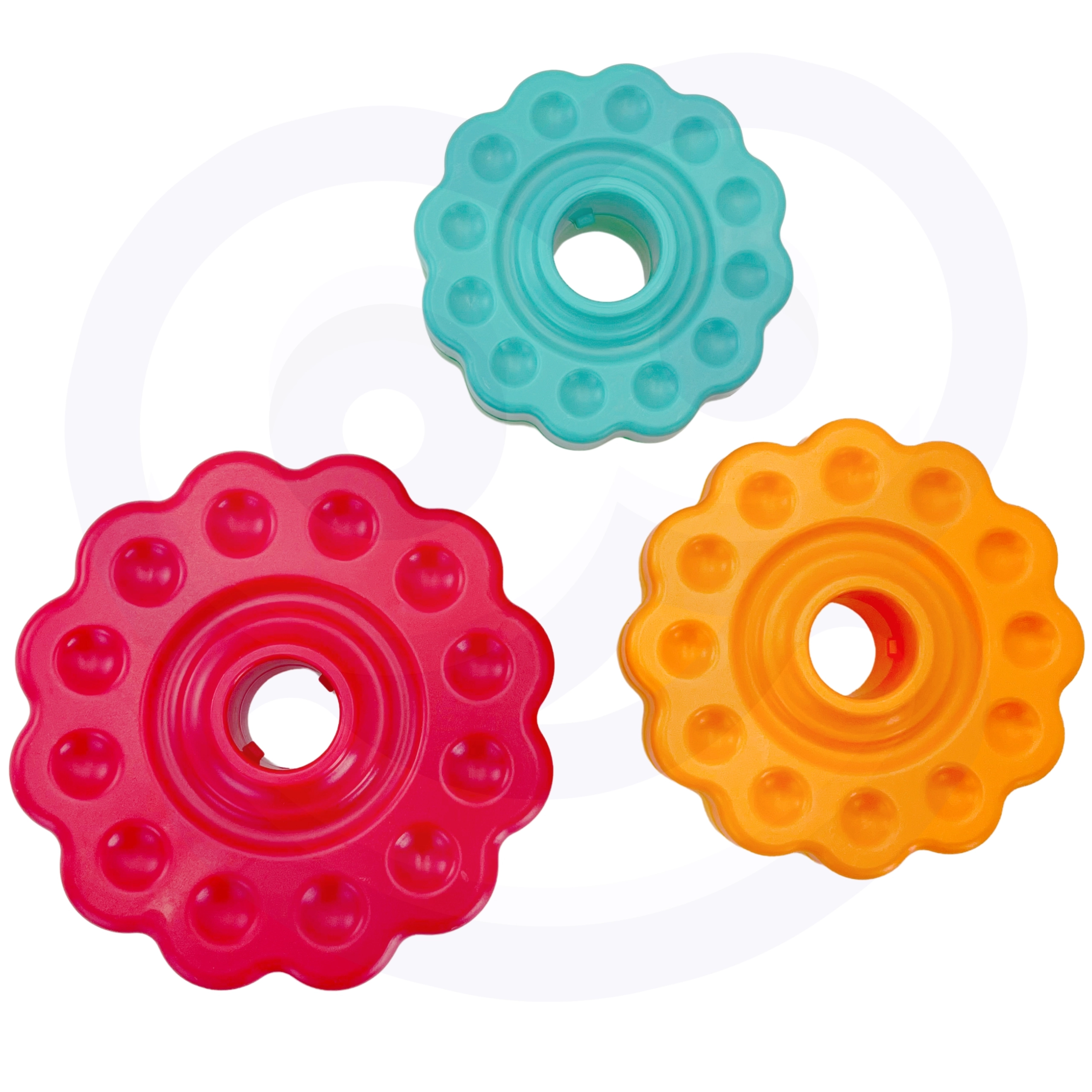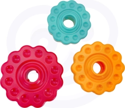 - Sīkās motorikas prasmes: Darbības ar diskiem veicina sīkās motorikas un acu–roku koordinācijas attīstību.